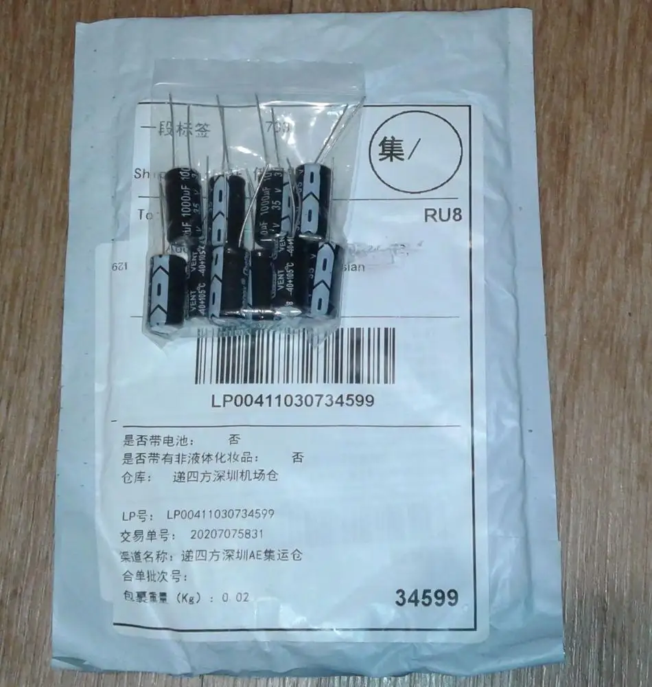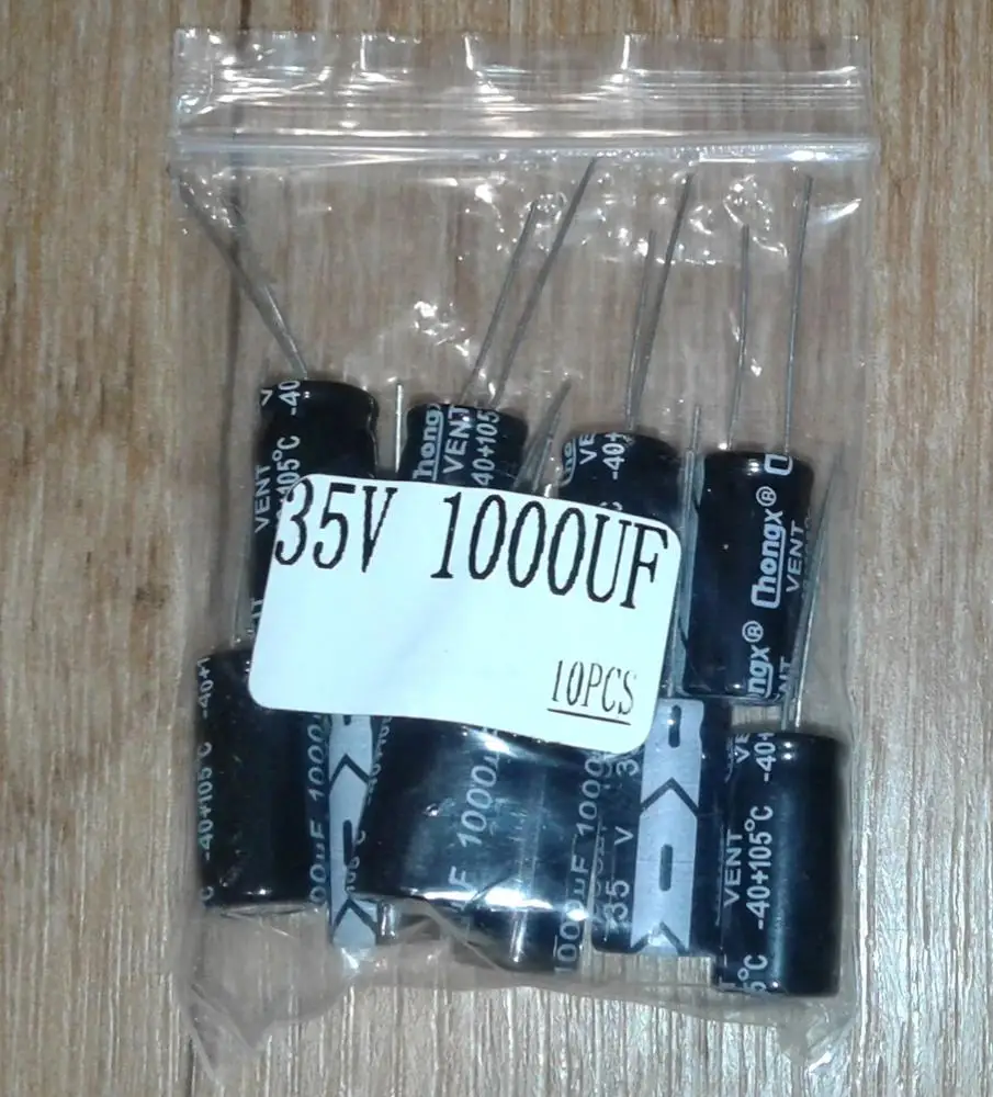 Алюминиевый электролитический конденсатор 35 в 1000 мкФ 10*20 мм 10 шт.