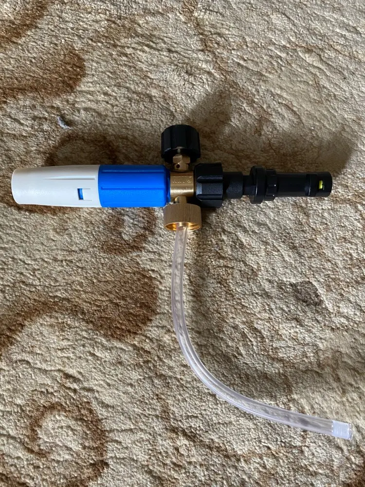 Пенообразователь CF S Mjjc 2-Gen для мойки высокого давления Karcher K2 UE подошёл. Удобное подключение к пистолету, есть комплект запасных сеточек, жиклёр. Брал для хим чистки ковров, сайдинга, легкового автомобиля. Рекомендую товар и продавца