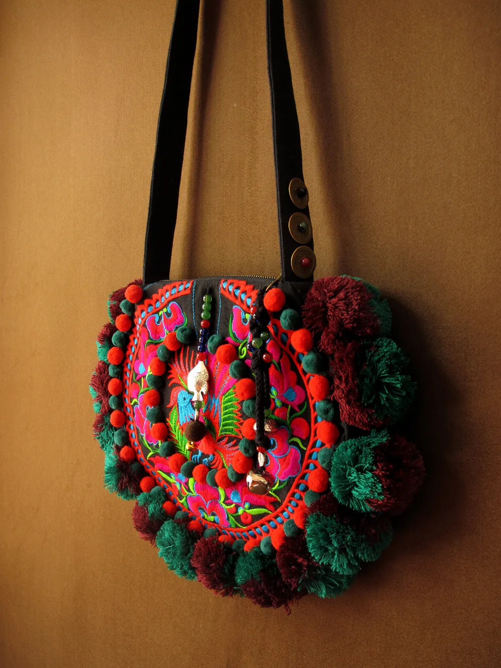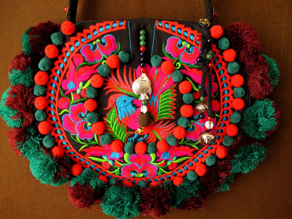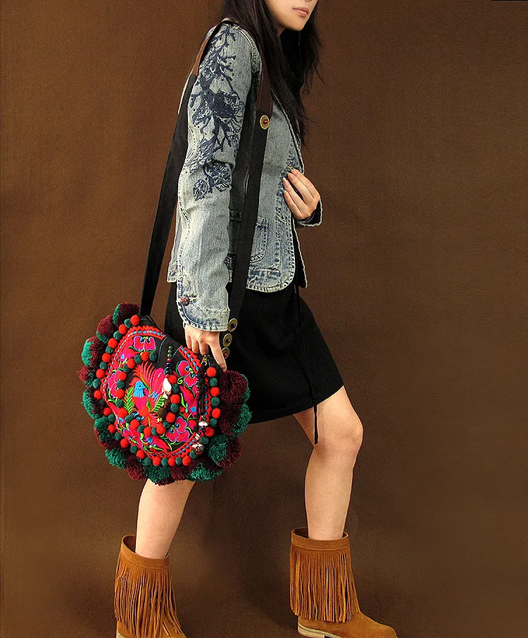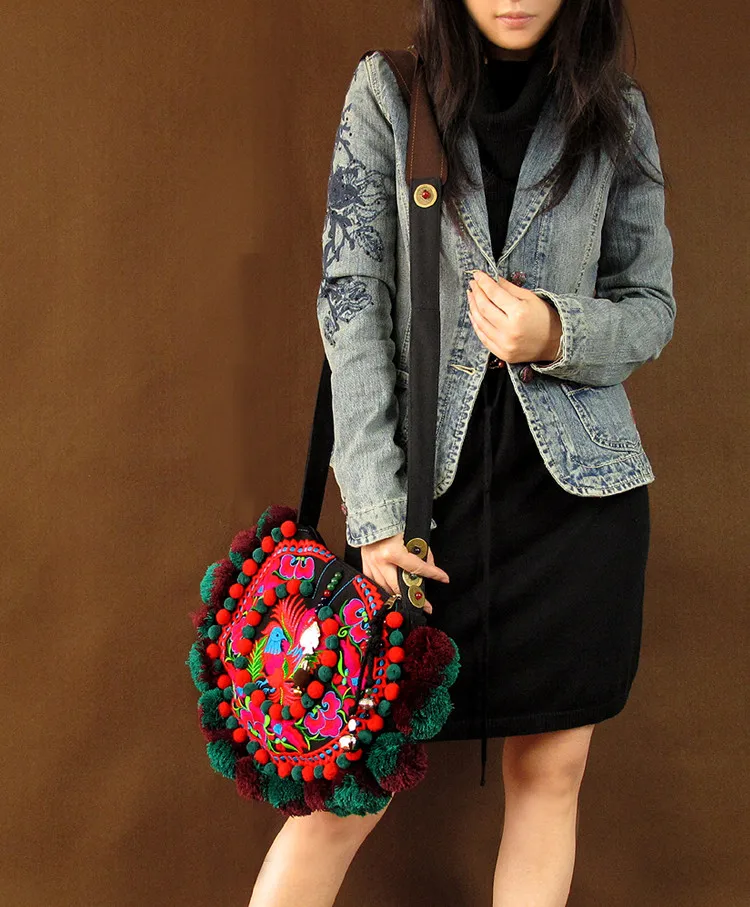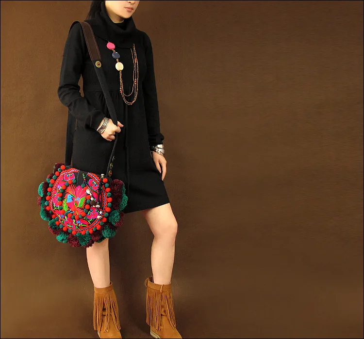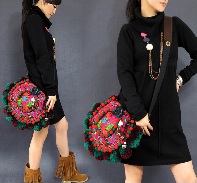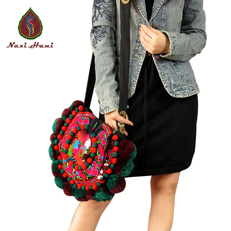 Брендовые оригинальные зимние модные круглые сумки с помпонами Naxi.Hani, винтажные Этнические женские сумки через плечо с вышивкой
