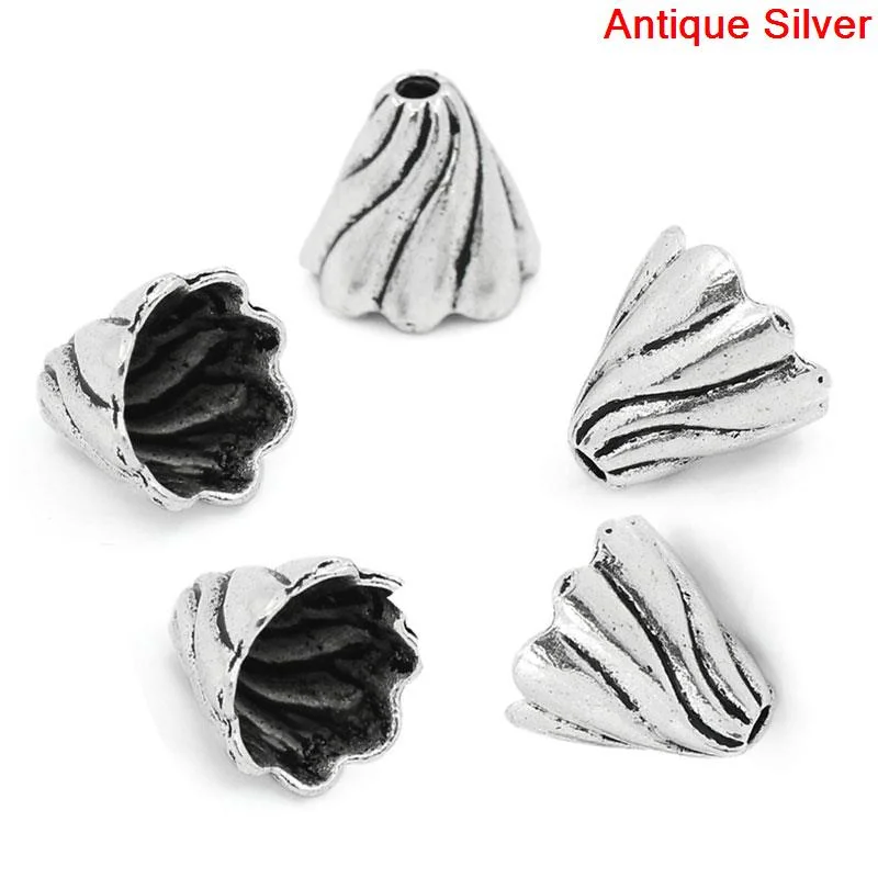 Металлические Шапочки для бусин 8 сезонов, конусные старинные серебряные Резные волнистые бусины сделай сам для изготовления ювелирных изделий (подходит для бусин 12-16 мм) 13 мм x 12 мм, 50 шт.
