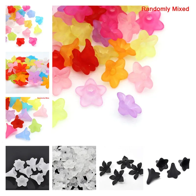 Матовые акриловые бусины Lucite Lily Flower, 8 сезонов, в случайном порядке, белыйчерный цвет, для самостоятельного изготовления сережек, ювелирные изделия, 50-800 шт.