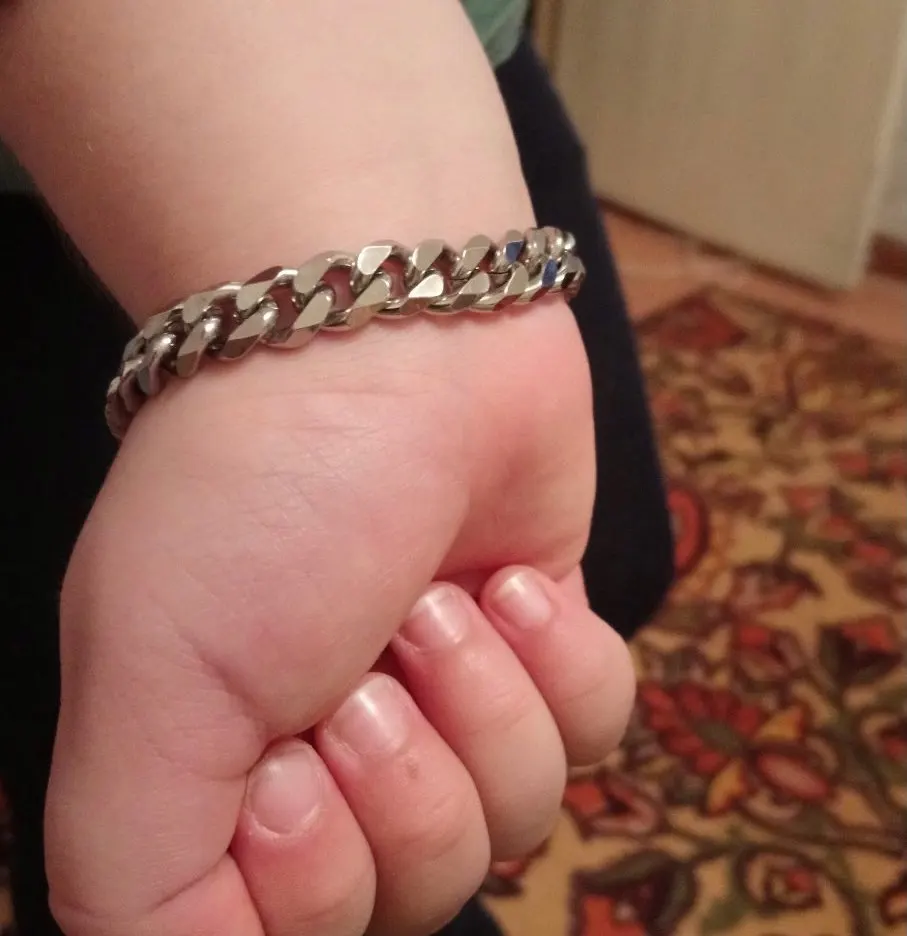 хороший браслет,на тонкое запястье немного велик, но с руки не спадает