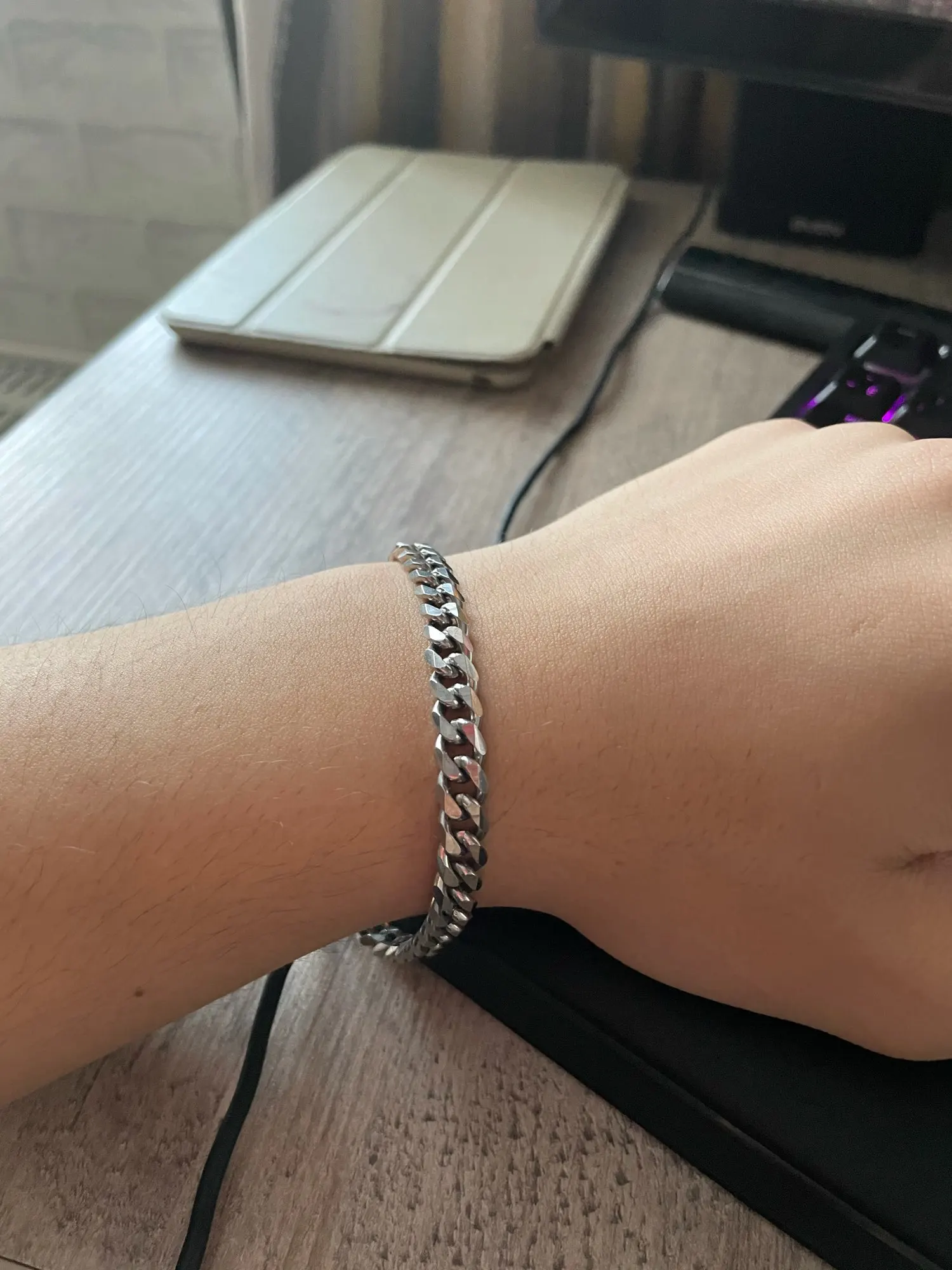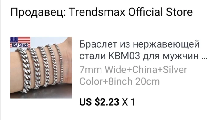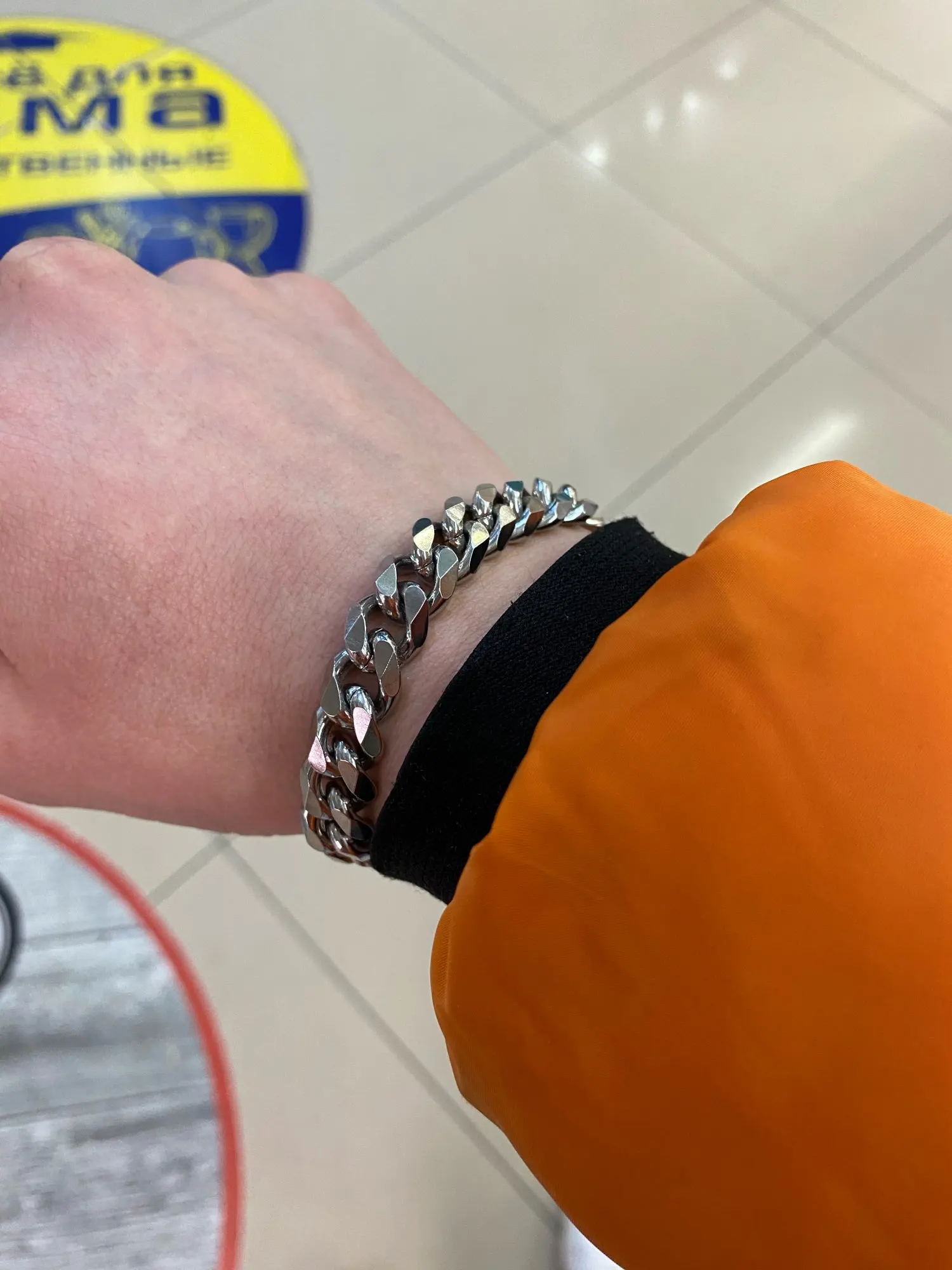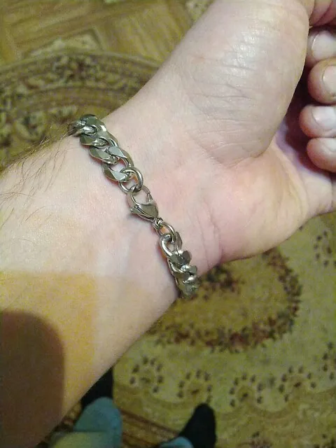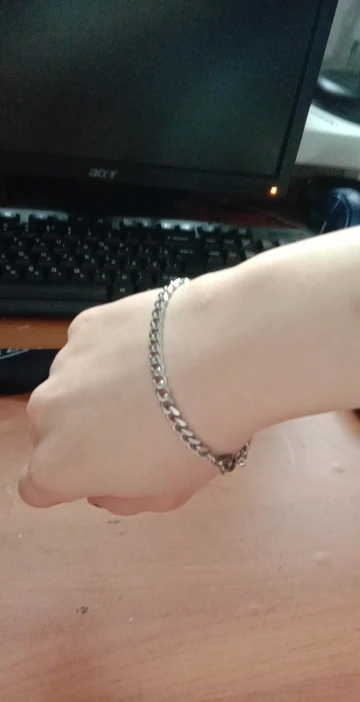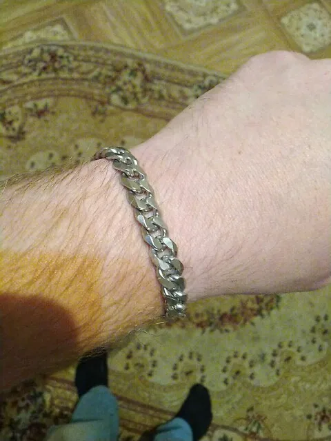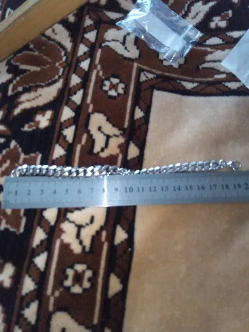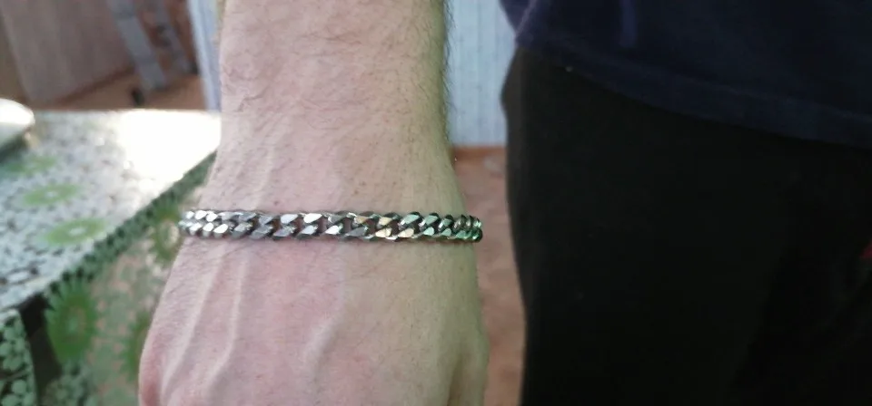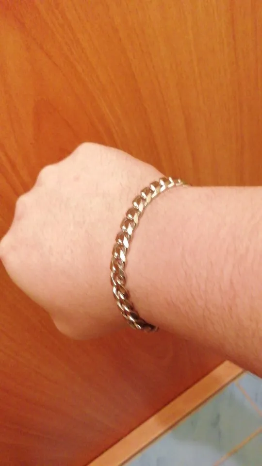 Браслет хороший . Пришёл за месяц в Свердловскую Область. На свету блестит . Надеюсь во время пользования не заржавеет и не испортится )) К покупке его советую :) 7mm - это оптимальный размер . Заказал на 20 см . На мою руку немного большеват , надо будет укоротить , снятием некоторых звеней. Но выглядит он вообще офигенно , да тем более не за такую цену . Продавец красавчик 8)) Респект с Урала 0) Буду ещё заказывать