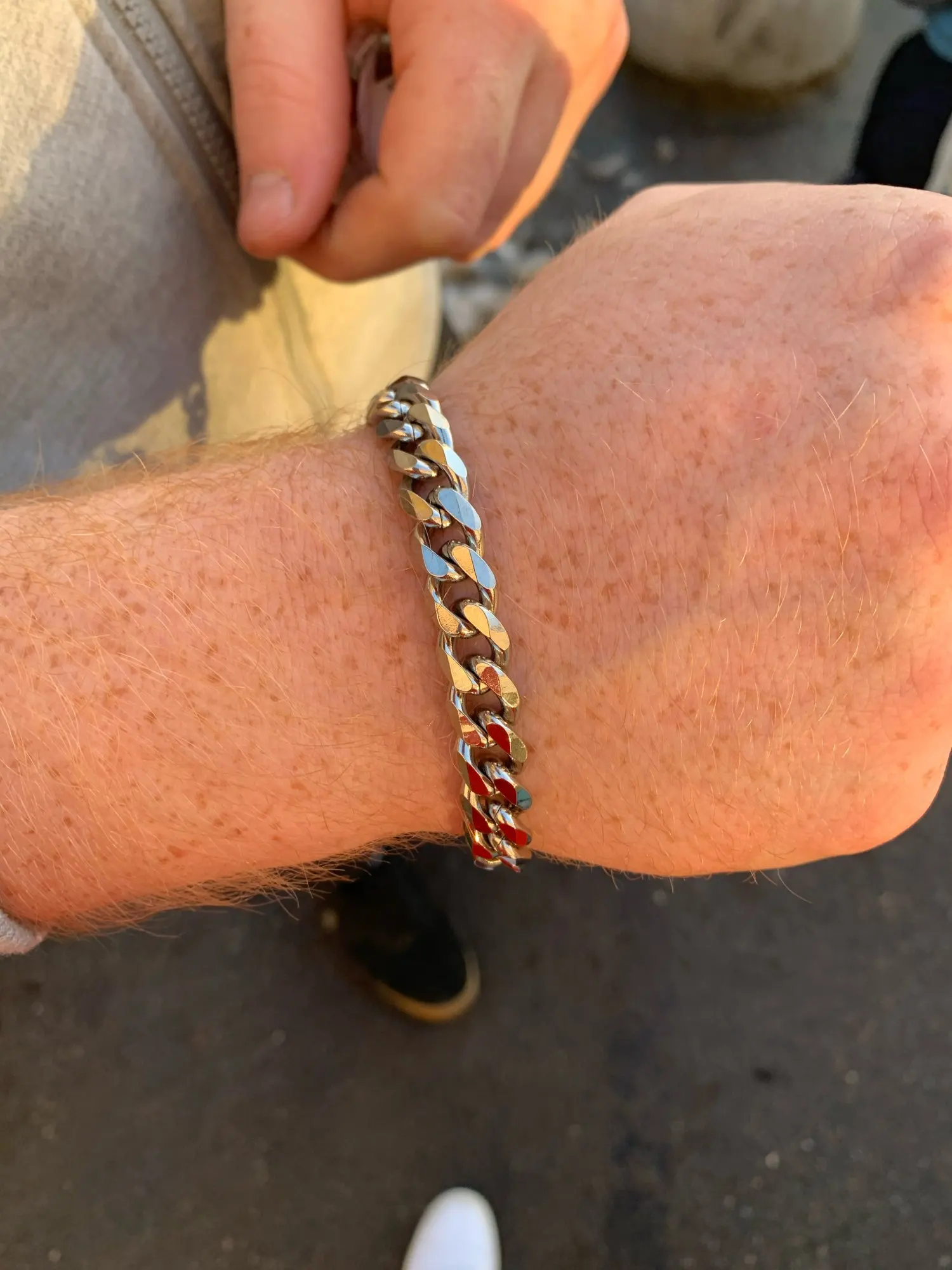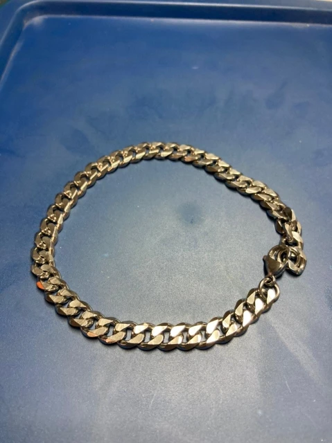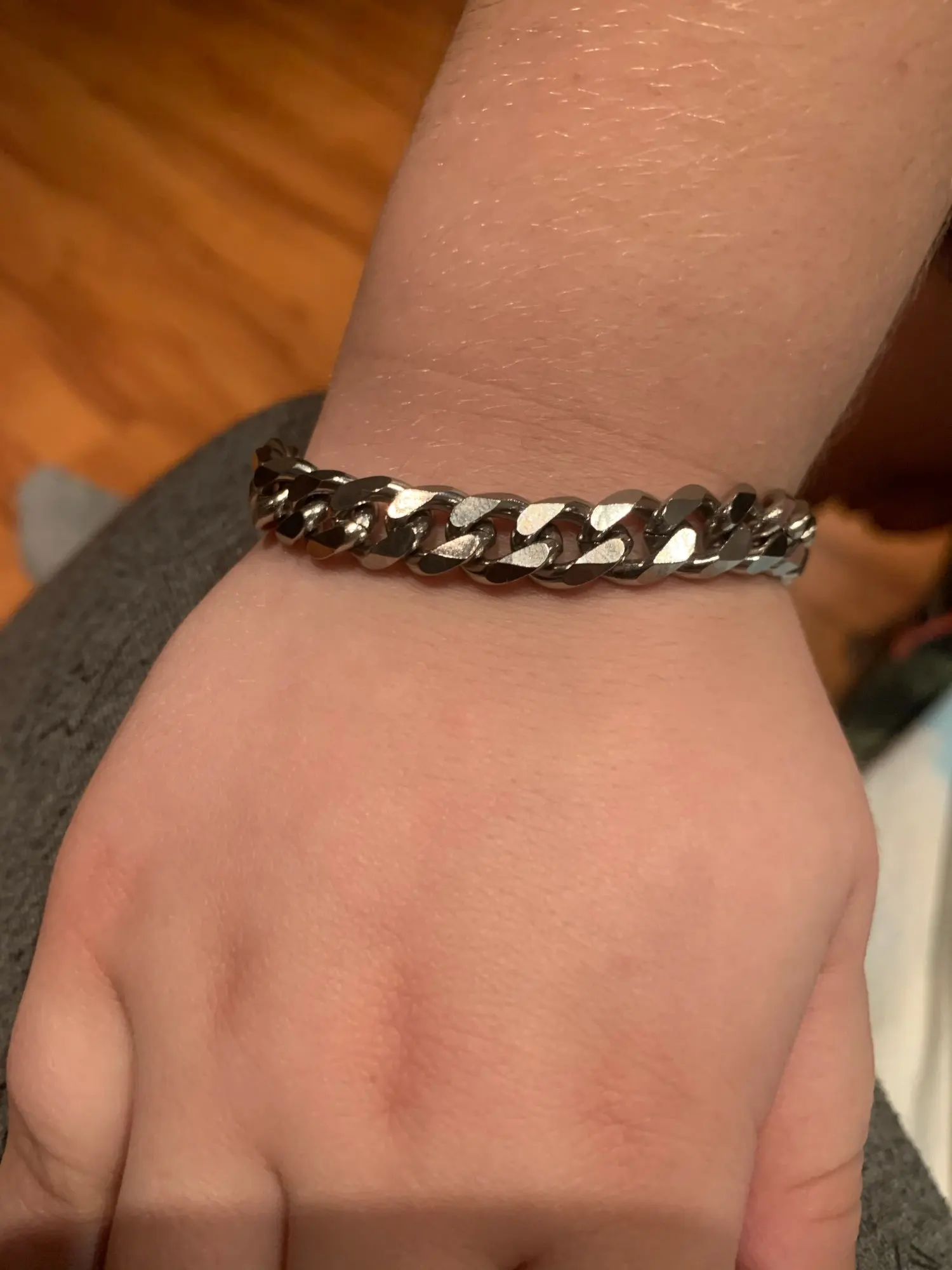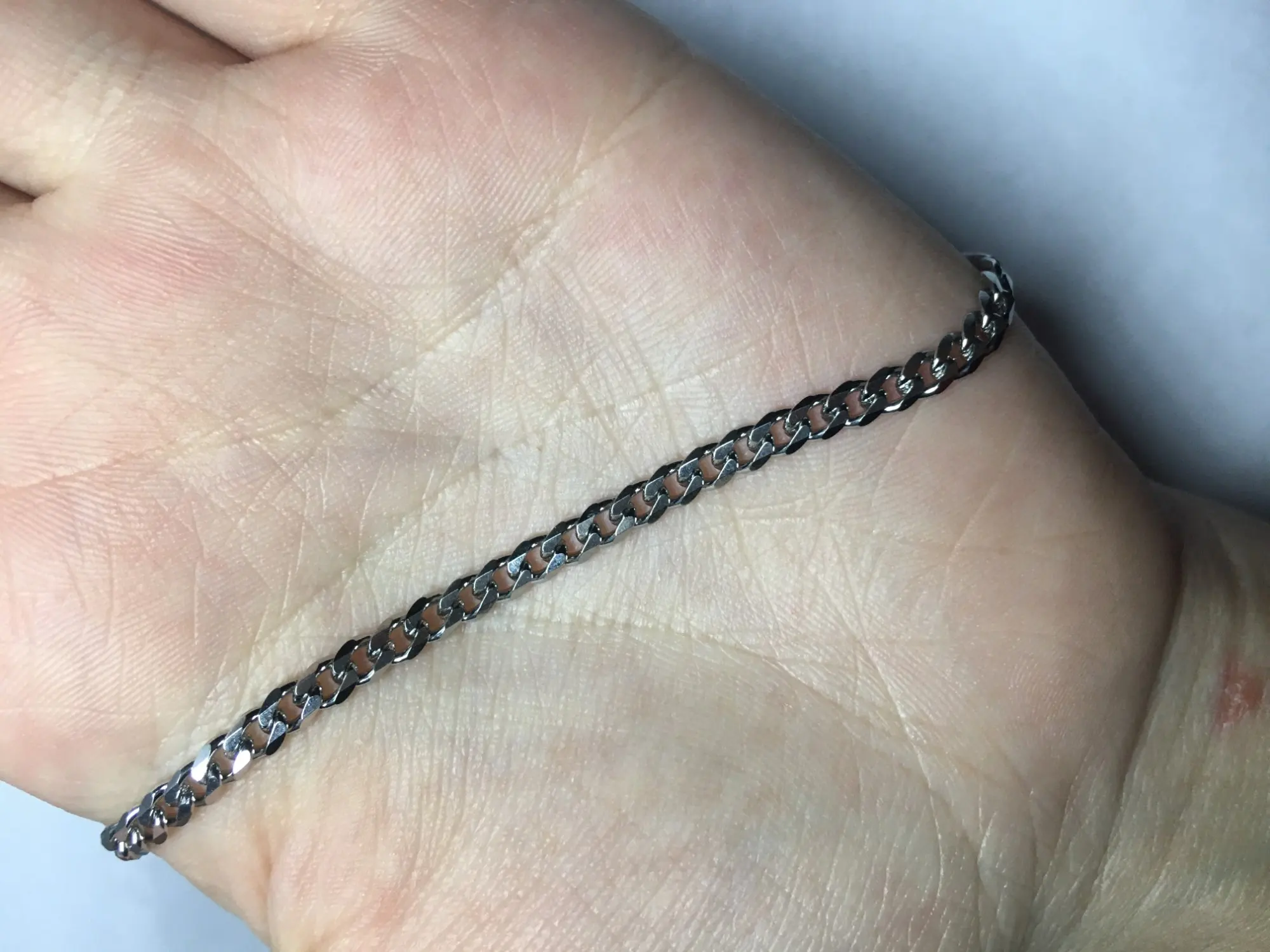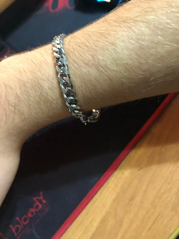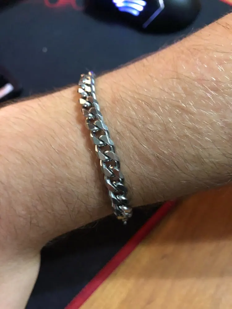 Браслет хороший . Пришёл за месяц в Свердловскую Область. На свету блестит . Надеюсь во время пользования не заржавеет и не испортится )) К покупке его советую :) 7mm - это оптимальный размер . Заказал на 20 см . На мою руку немного большеват , надо будет укоротить , снятием некоторых звеней. Но выглядит он вообще офигенно , да тем более не за такую цену . Продавец красавчик 8)) Респект с Урала 0) Буду ещё заказывать
