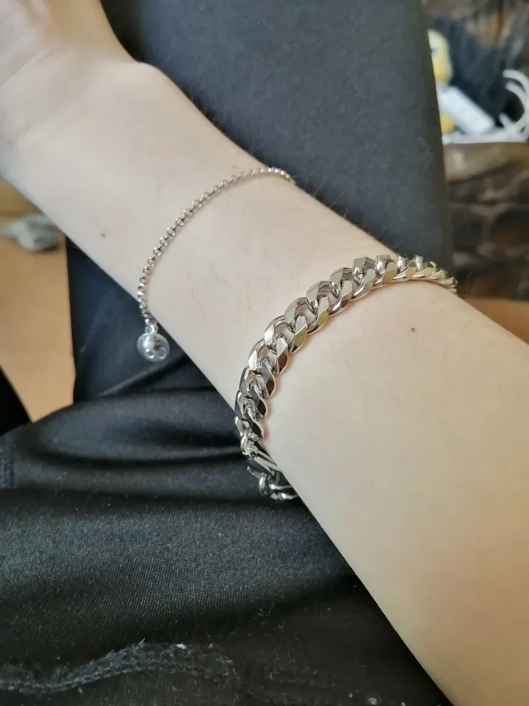 Цепи как цепи, но есть все таки ощущение стали, а не серебра. Если вы лук с ними собираете, ставьте акцент на оригинальные, а их так на задний план. Типо серебряные часы и цепочка мелкая-так гармонично.