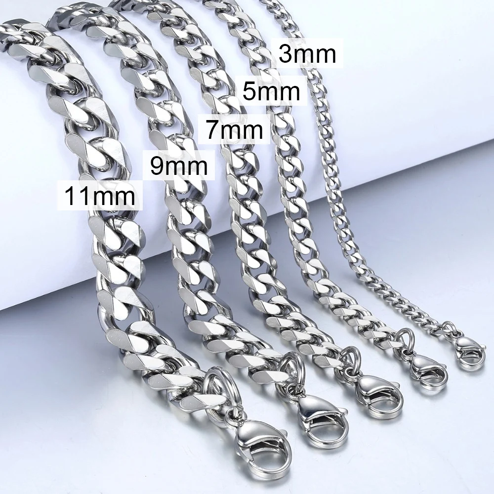 3-11mm Men's Bracelets Stainless Steel Curb Cuban Link Chain Black Gold Color Silver Color Bracelet For Women Jewelry KBM03