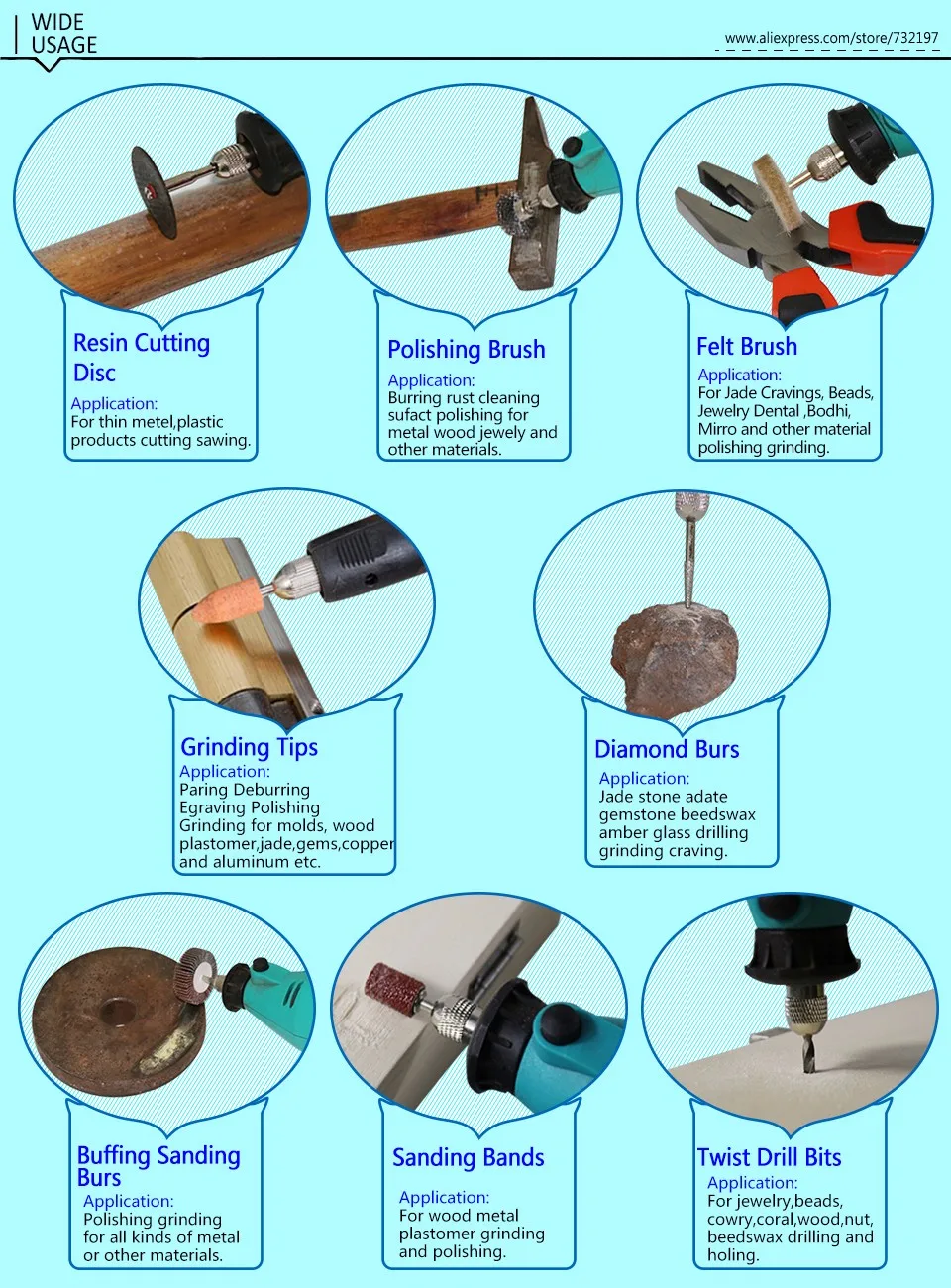 Абразивная щетка для Dremel, размер 3 дюйма, зернистость 80, 120, 220, 320, 10 шт.