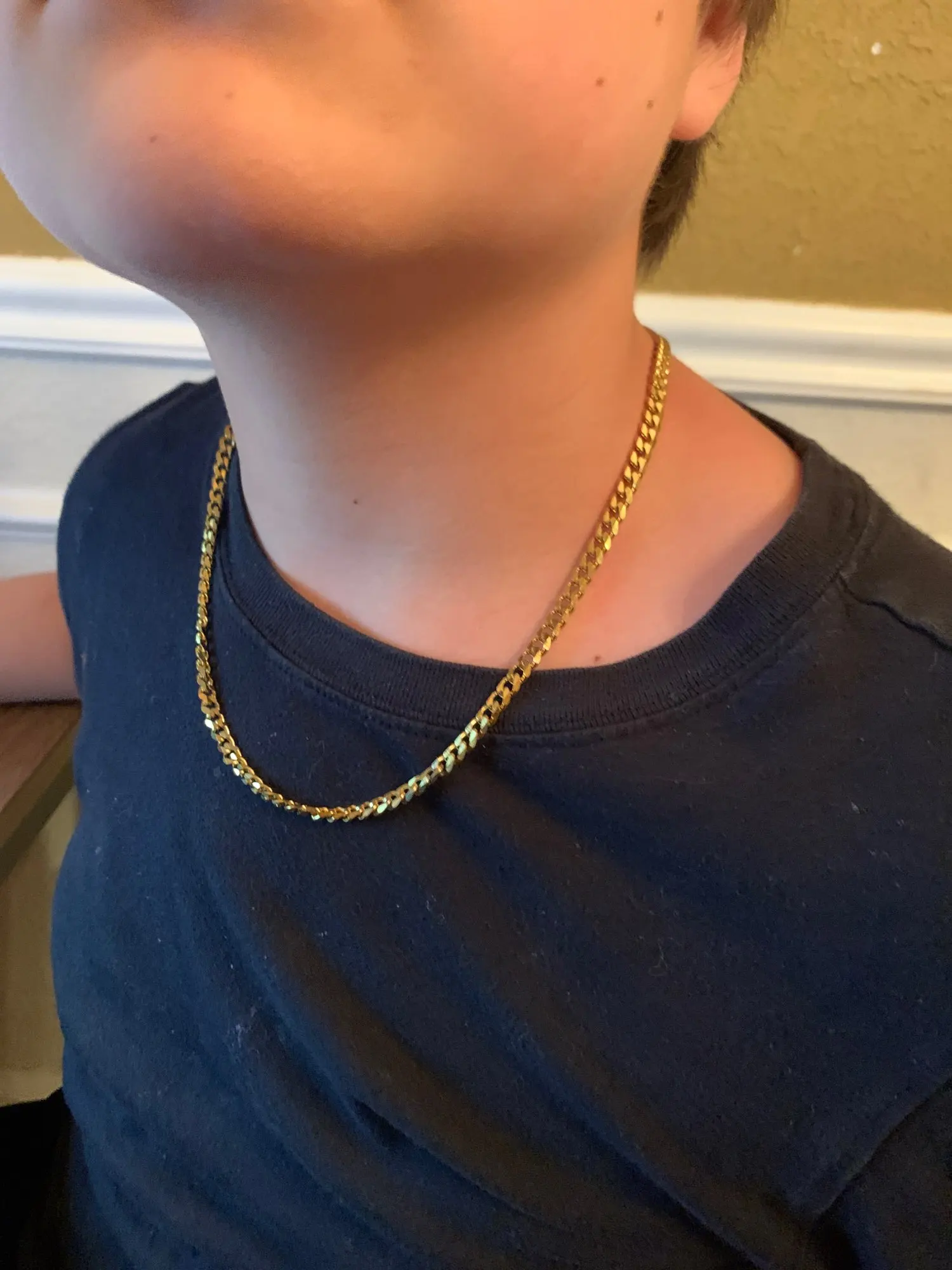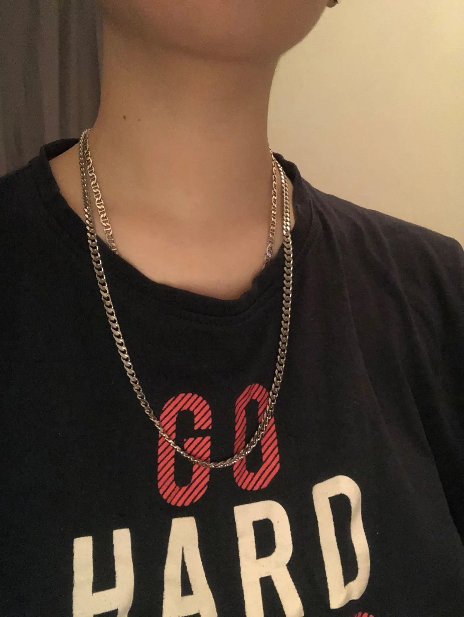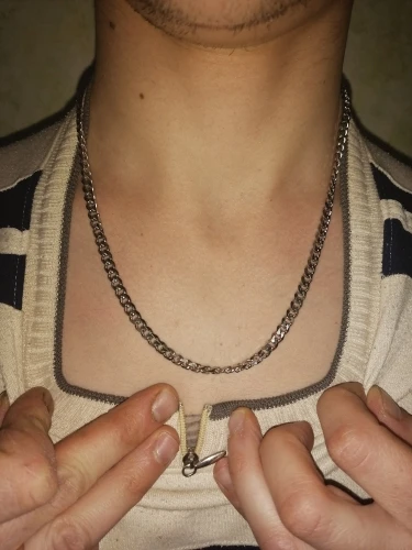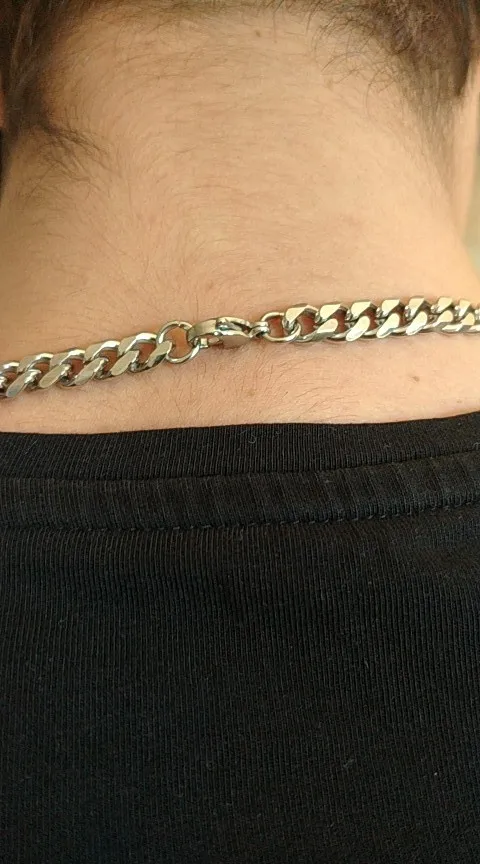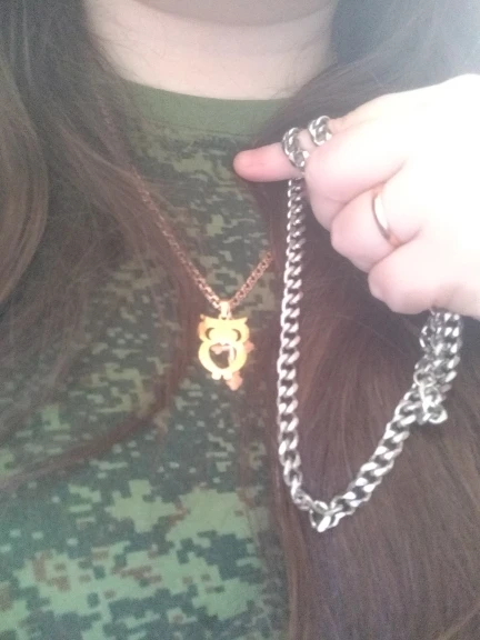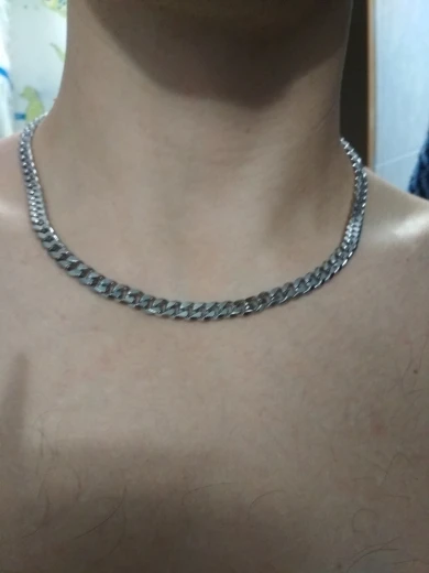 Очень толстая и увесистая цепочка. Заказывала самую большую для мужа. Продавец уверил что она не почернеет! Будем надеяться что будет хорошей вещью. Позже дополню, если будет доступно. Продавец красавчик на вопросы отвечал оперативно, отправил молниеносно. Всем добра! Пример толщины с моей настоящей золотой цепочкой, она тоже не тонкая. Эта цепь по толщине чуть тоньше чем у Дизеля в Форсаже. Ну по крайней мере толще и не надо. Обычный крестик не налезет, душку нужно массивную искать.