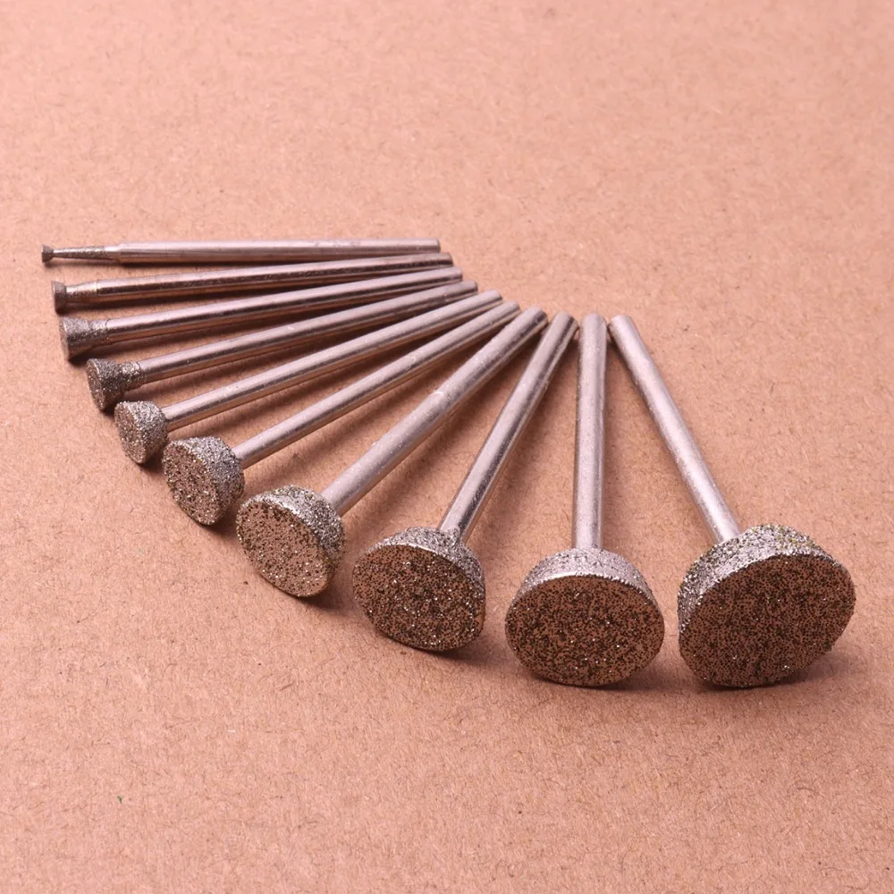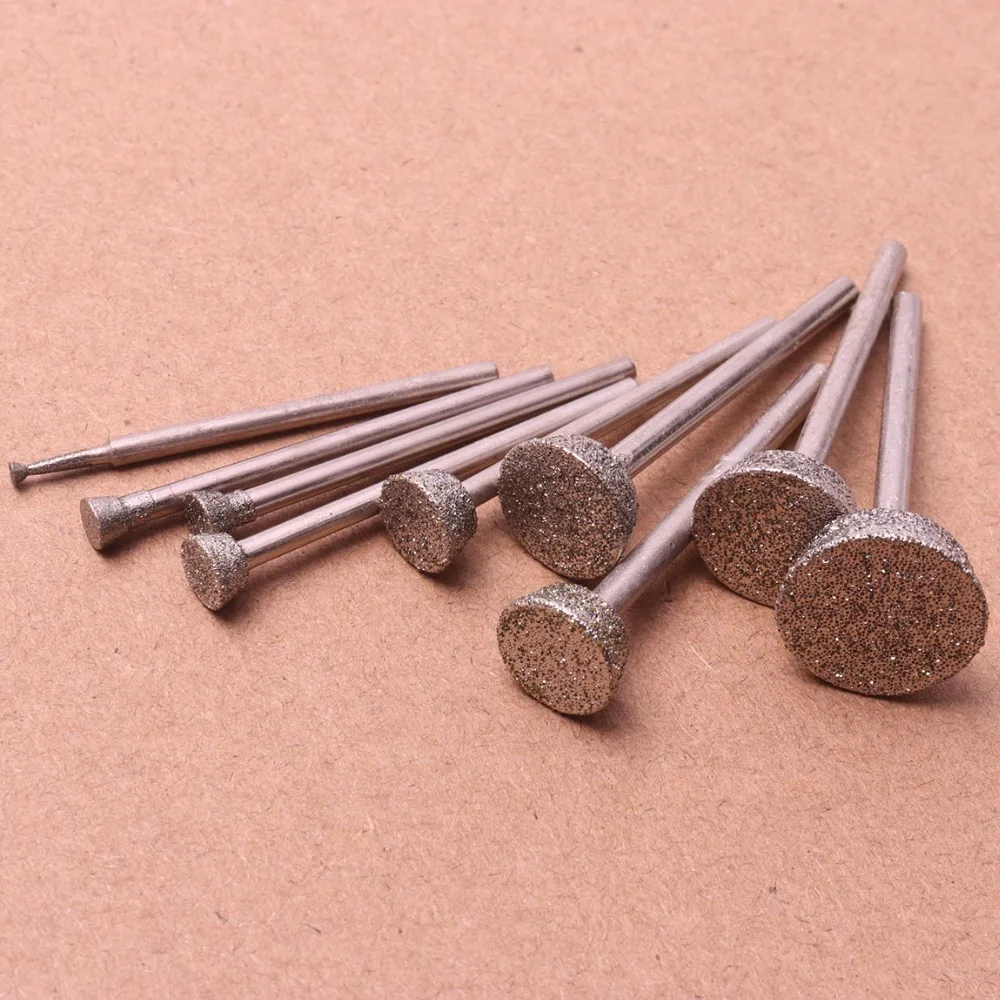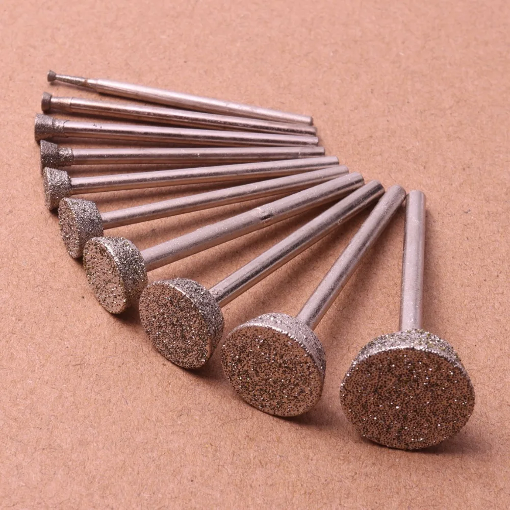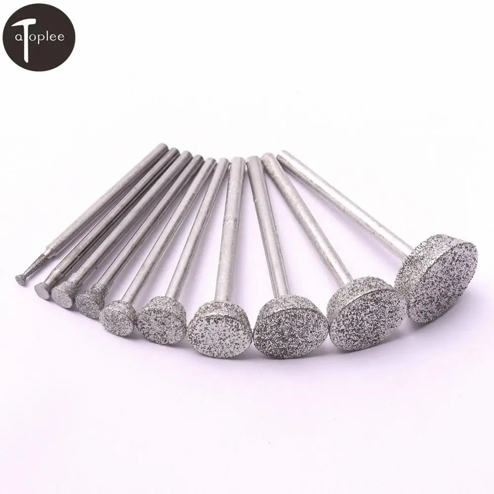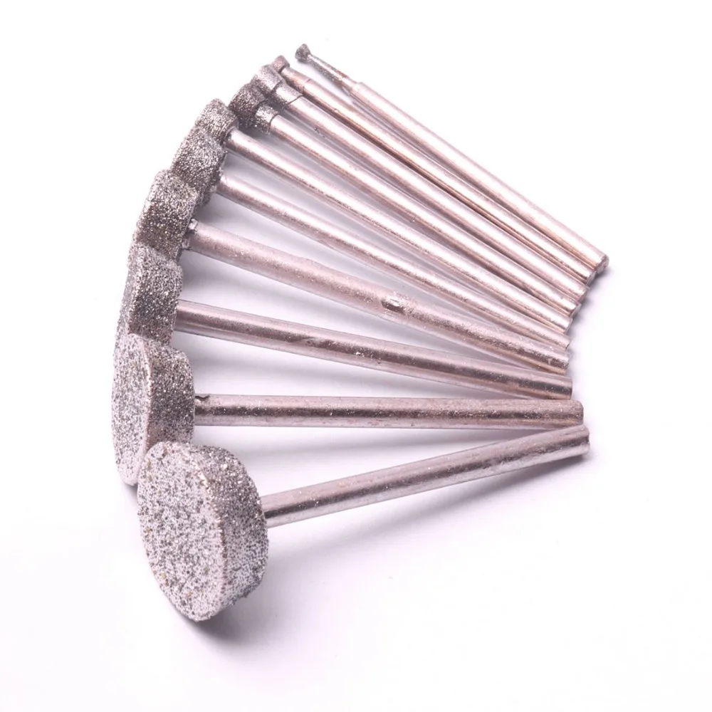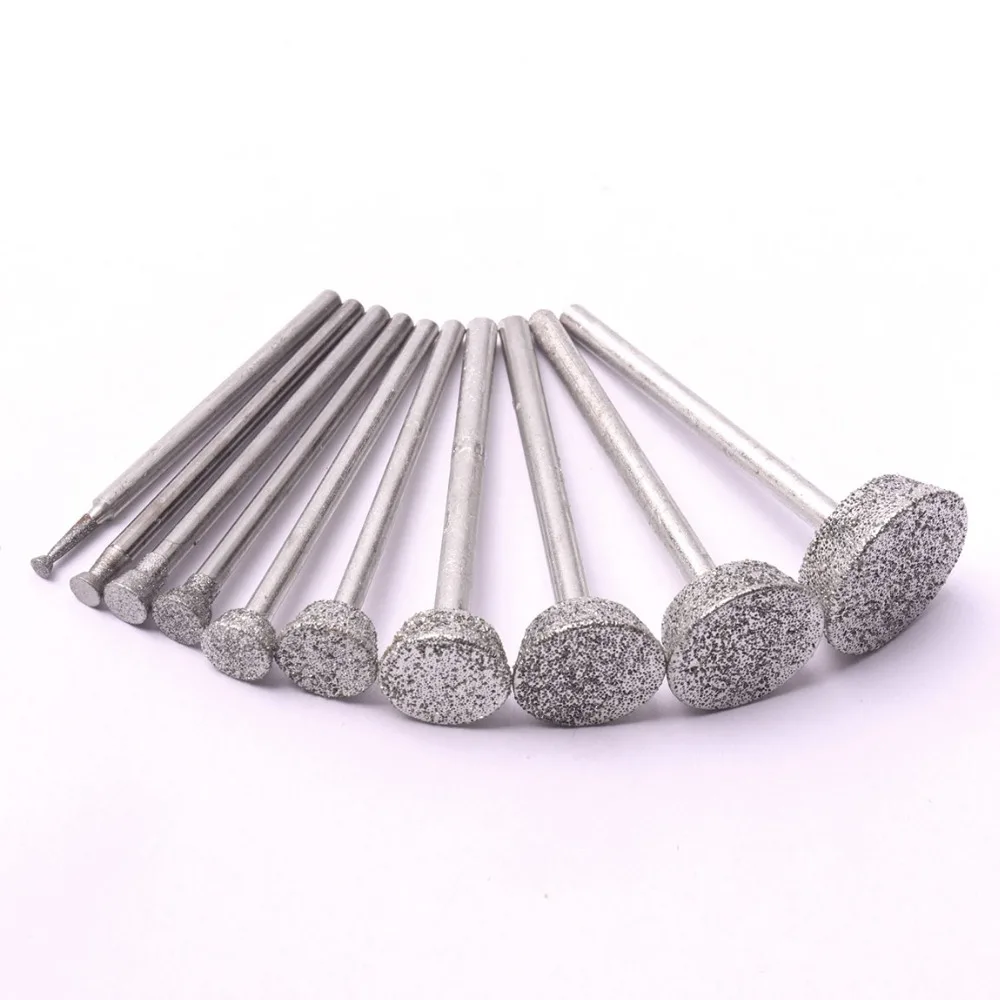 Набор из 10 алмазных шлифовальных насадок, сверла от 2 мм до 16 мм, роторные инструменты Dremel, Нефритовый инструмент для резки камня, полировки, гравировки