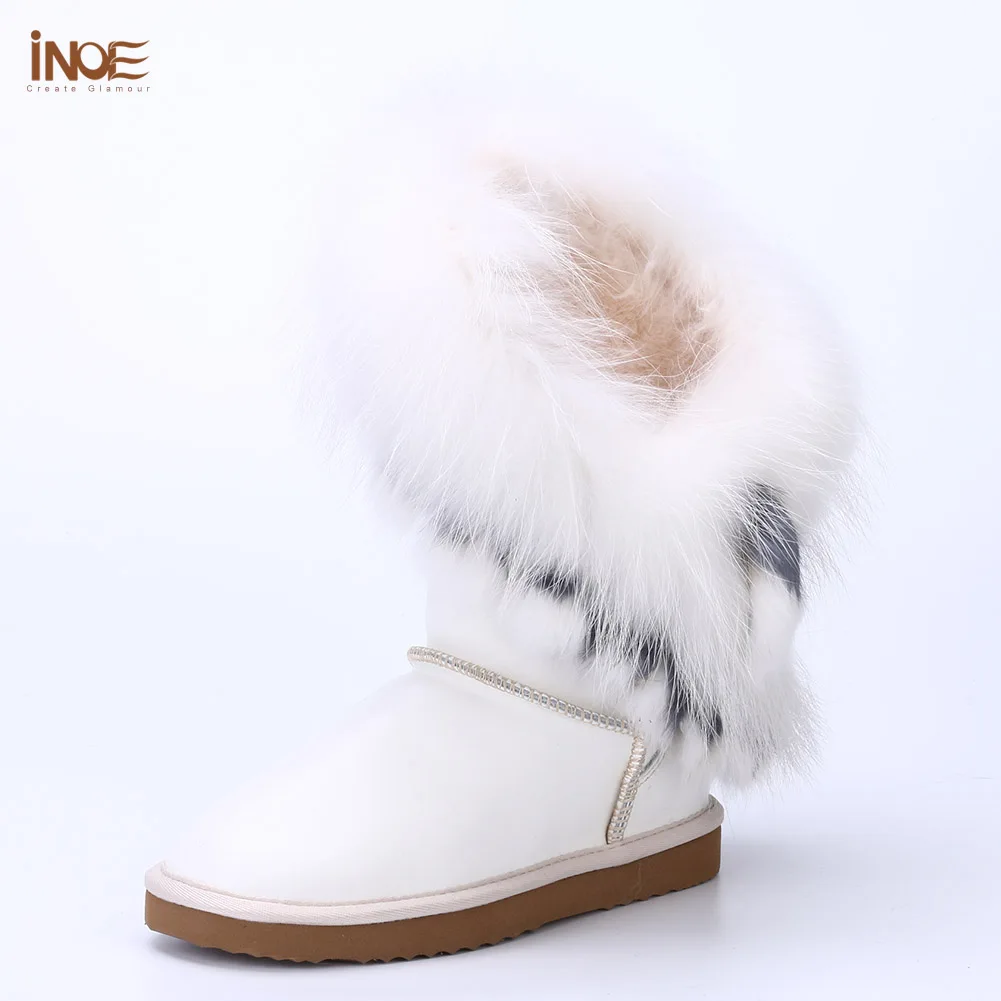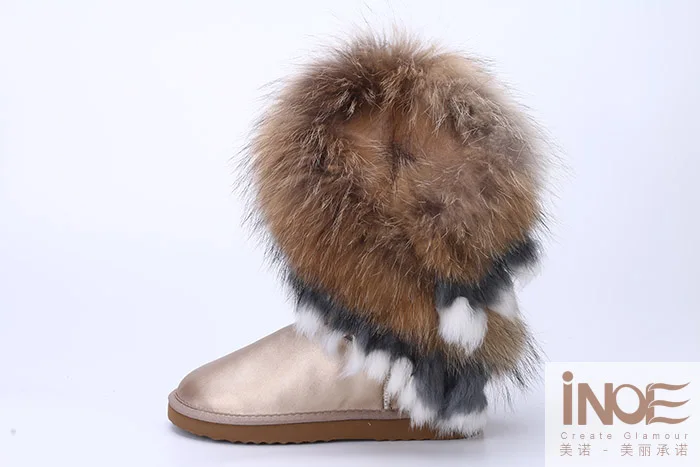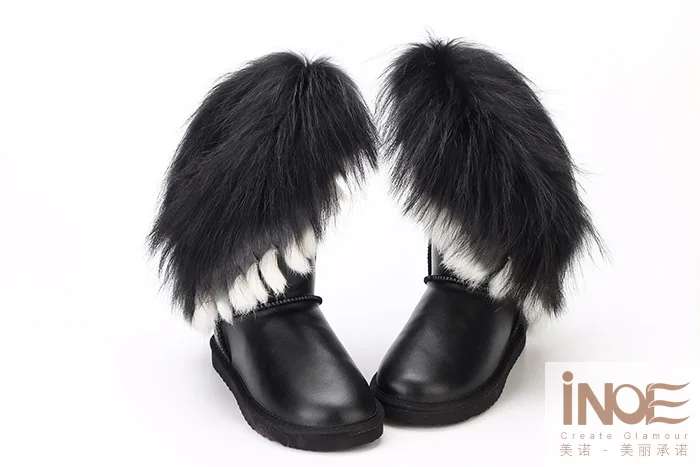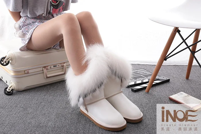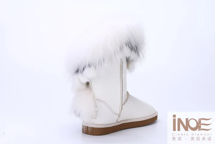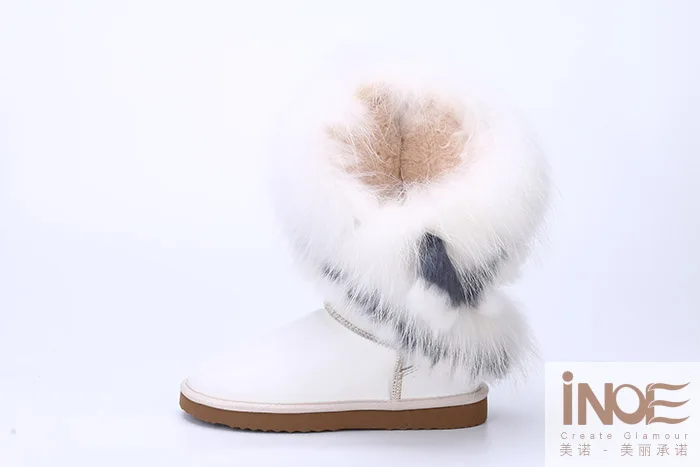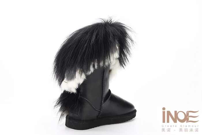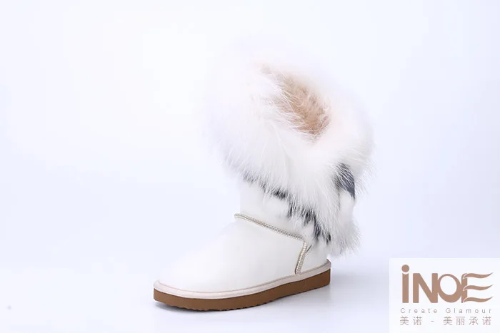 Внешний материал: коровья кожаВнешний мех: натуральный мех лисы и натуральный мех кроликаВнутренний материал: синтетический овечий мехВысота голенища: около 30 см (от подошвы до верха)Бренд: INOEВысокое качество!
