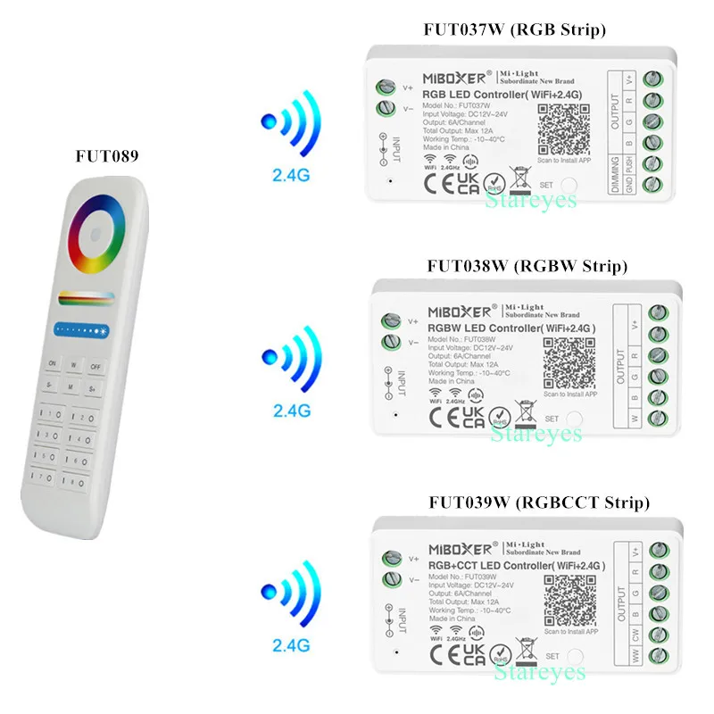 8 зон:1 шт. пульта дистанционного управления может управлять контроллерами 8 зон, например: 1 шт. FUT089 может управлять WL5 из 8 зон.