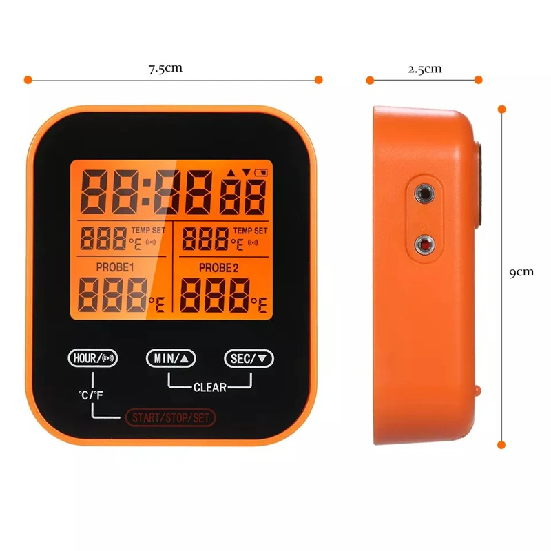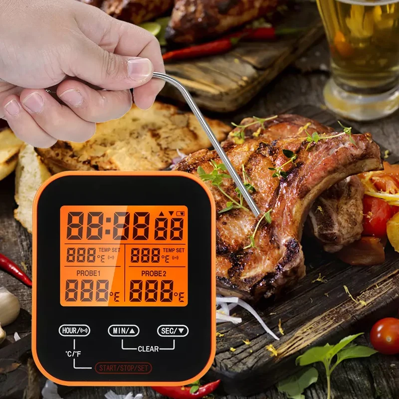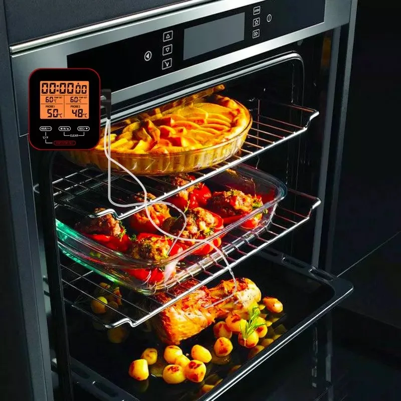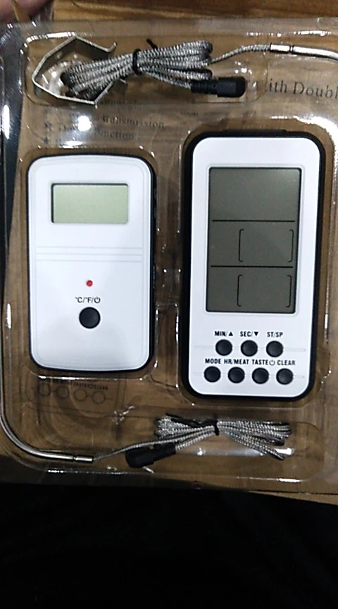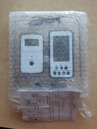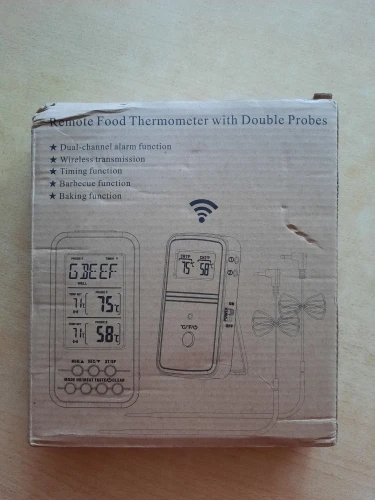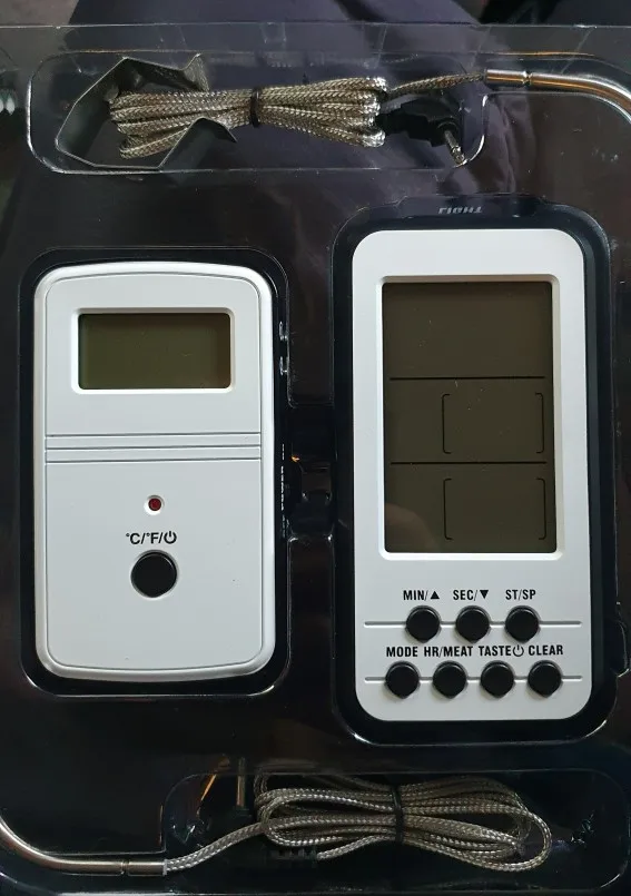 Отличный прибор. Температуру замеряет, на головной прибор данные передаются без проблем. Использовал в духовке и.в электрогриле (прибор, к которому подключается щуп - снаружи, он высокую температуру не выдержит). Купил вариант с двумя щупами - температура отображается на экране от каждого щупа одновременно Не пожалел, т.к. бывает полезным замерять температуру в разных частых блюда (либо замерять в 2х разных готовых блюдах). Головной прибор по сути я не использовал, т.к. пока готовил только на кухне дома, там маленького прибора, к которому щупы подключаются - достаточно. Возможно, на участке, если далеко отходить, в нём будет боль смысла. Ну или дома если.с кухни уходить... но обычно у меня так не получается - мясное все быстро готовится, пока сам другими вещами на кухне занимаешься... В общем, прибор понравился, рекомендую к покупке.