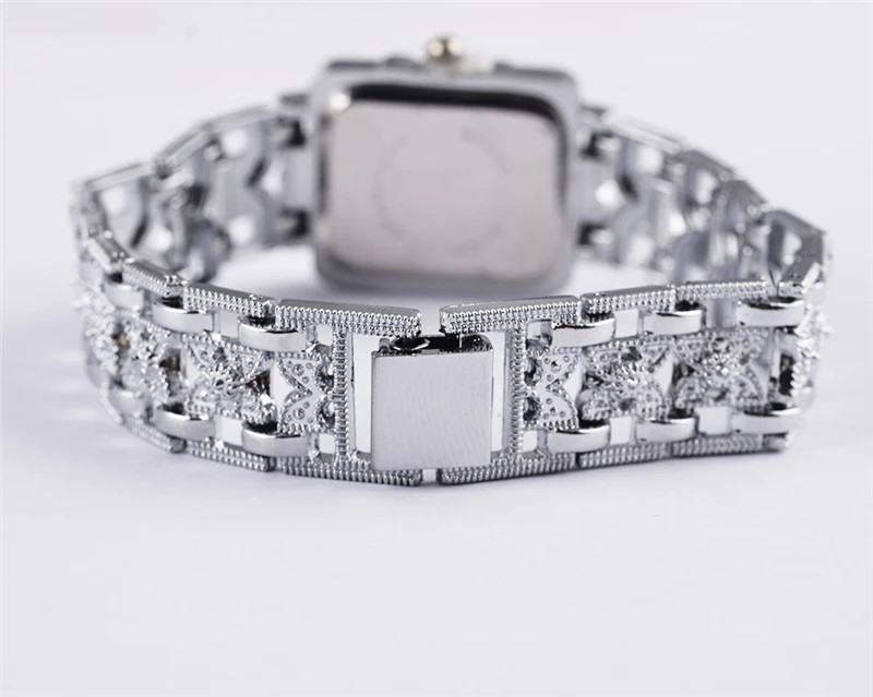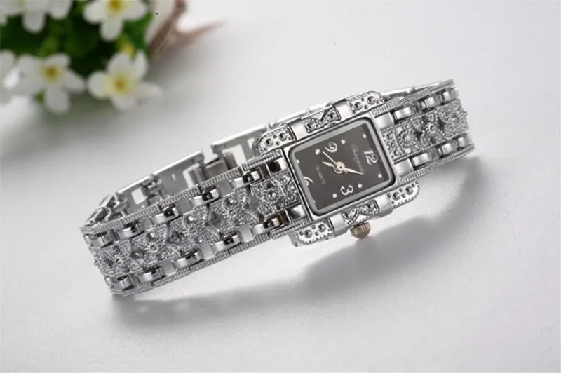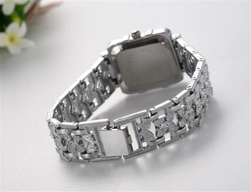 Женские часы с прямоугольным циферблатом, Серебристые часы из нержавеющей стали с кристаллами, Модные кварцевые женские часы, Лидер продаж