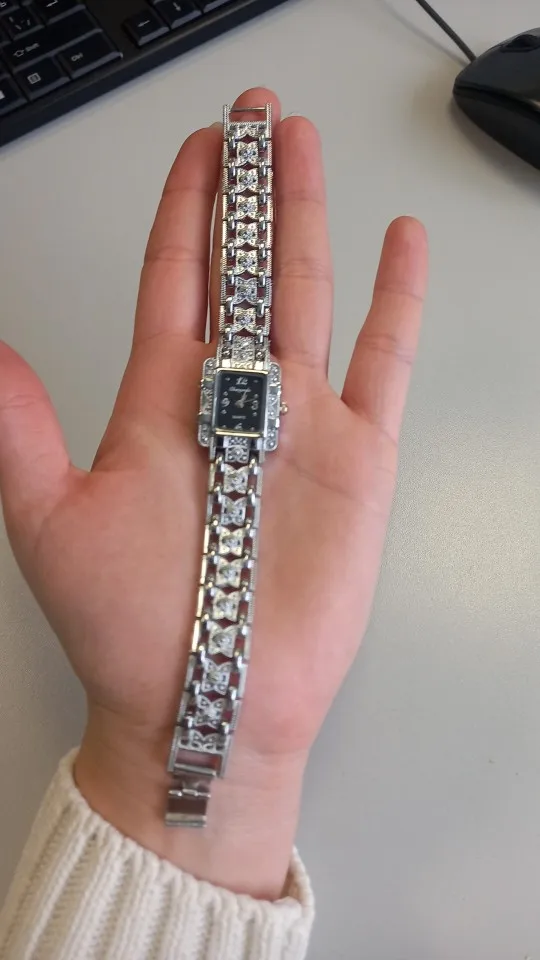 часы выглядят,как детские, очень маленькие, только на миниатюрную ручку,на видео выглядят красивее и больше размером.