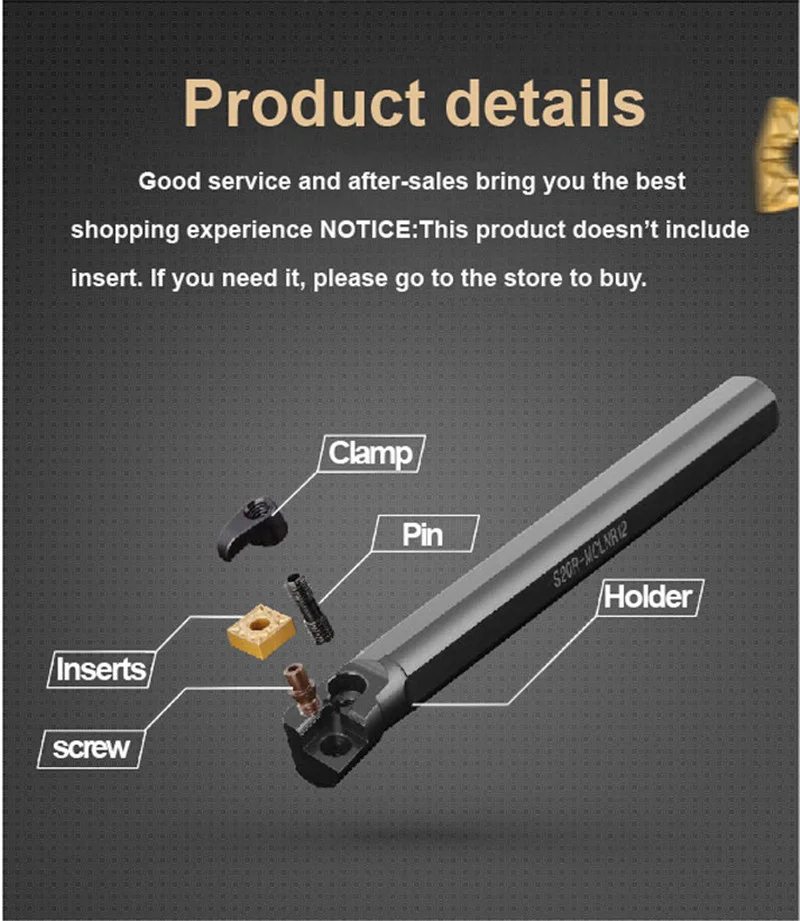 1 шт. токарный инструмент (не включая карбидные вставки)Или1 шт. токарный инструмент + 10 шт./кор. оригинальная вставка (для стали)