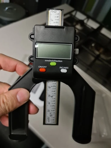 Доставка всего за 14 дней. Измеритель производит очень хорошее впечатление. Нет пробивных краев или аналогов на пластике. Оба магнита на ногах доступны. Ноги немного путаются, но этот можно не обращать внимания. Могу ли я использовать его еще, потому что я должен получить только аккумулятор.