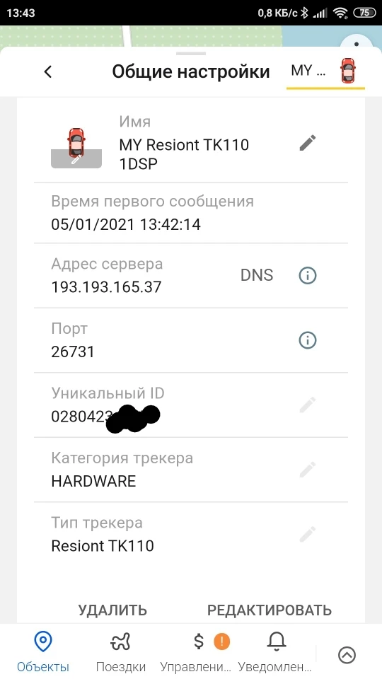 Долго гемороился с gps-trace.com. Помог отзыв другого покупателя другого продавца. Цитата: Настроил на gps-trace.com, категория трекера - Hardware, тип трекера - Resiont TK110, уникальный ид - к ид трекера в начале добавляете ноль (получается вида 028042442ххх). смс с указанием порта, возможно другой предложит, смотрим в приложении: SERVER,666666,1,193.193.165.37,26731,0# Очень удобное приложение: ruhavic