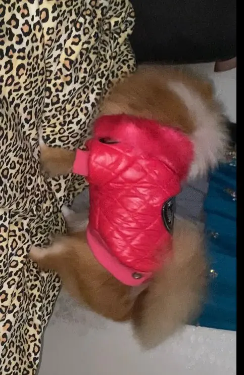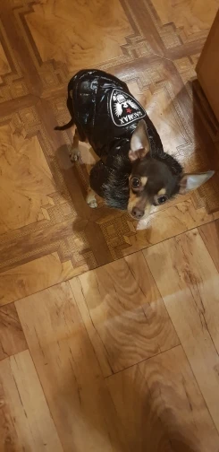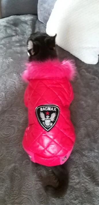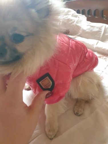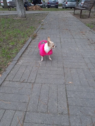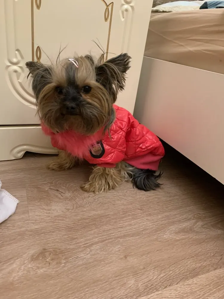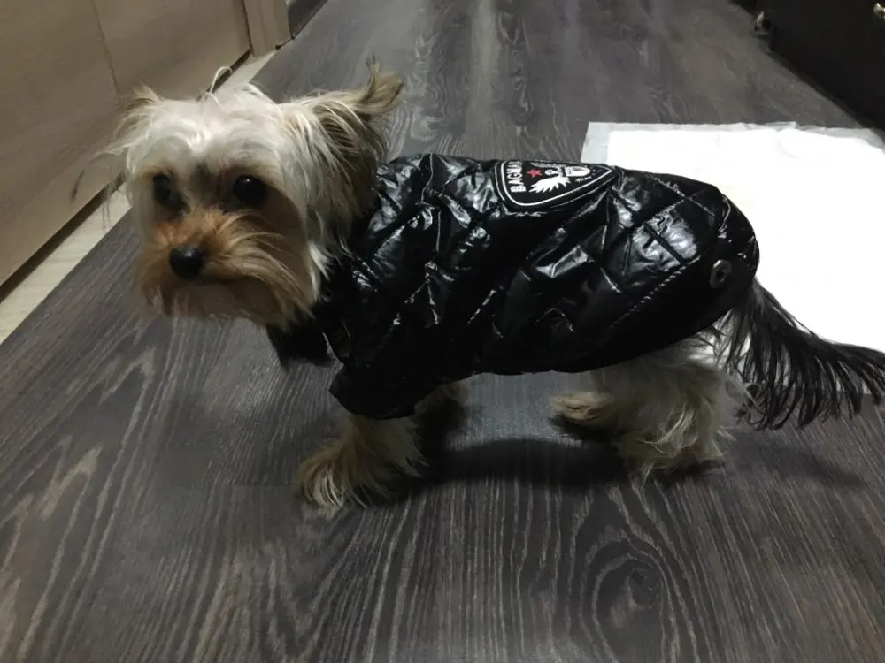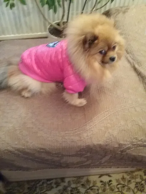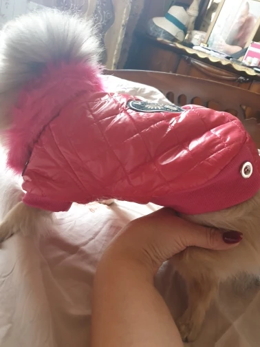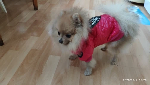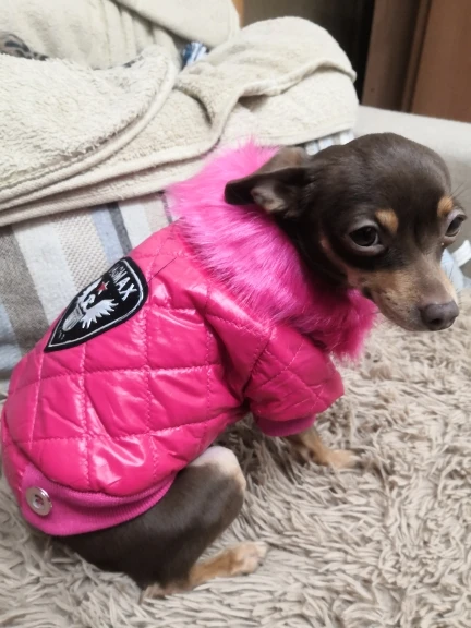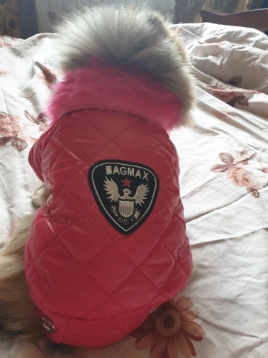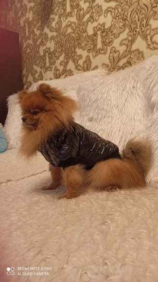 Очень симпатичная курточка. Качественно сшита. Нитки нигде не торчат, запаха нет. На шпица 3.5 кг чуть длинновата, зато по объему груди в самый раз. Доставка до Москвы 3 недели. Спасибо.