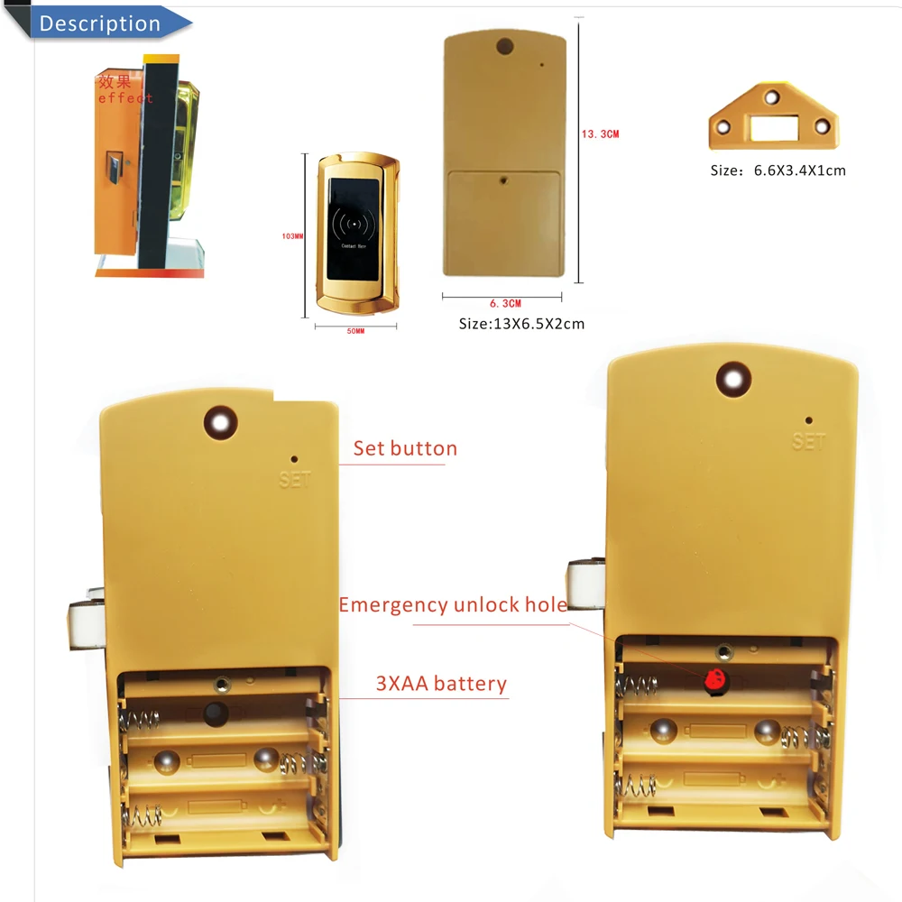 Метод настройки:(1): Инициализация:После установки батареи удерживайте кнопку инициализации в течение 3 секунд, зуммер «Звуковой сигнал» один длинный звуковой сигнал, отпустите кнопку, зуммер «Звуковой сигнал» каждые 1 секунду, вошел в режим «Одна карта». Звуковой сигнал не прекращается. Затем нажмите кнопку инициализации, зуммер каждые 1 секунду «Звуковой сигнал» «звуковой сигнал» дважды, вошел в режим двойной карты.(2) Установите карту управления:Установите режим с одной или двумя картами на панели, чтобы считывать руку, выгравированную тремя словами карты управления "(или карты с цепочкой для ключей), зуммер подаст длинный звуковой сигнал, первый набор карт управления считывается на другую карту управления, Каждый раз в сопровождении зуммера, длинный звуковой сигнал указывает на то, что карта уже настроена на работу. В режиме с одной или двумя картами карта управления может использоваться для открытия двери.(3) Установите гостевую карту:Сказал, что карта установила хороший длинный звуковой сигнал для любой карты управления, чтение 3 под на передней панели, в то время как светофор мигает, затем читайте в дверь клиента пронумерованную карту (рука) набор карт для гостей. В режиме одной карты Гостевая карта может открыть дверь.(4) Установите карту официанта:Панель считывает любую карту управления, зеленый светильник быстро мигает, чтобы войти в состояние, чтобы установить карту официанта, взять гравировку с помощью панели «карта официанта» (или брелок). Один длинный звуковой сигнал зуммера указывает на то, что карта была установлена на карту официанта, когда лампа не погашена, установив 13 последовательных карт официанта. Карточка официанта не может открыть дверь.2: Меры предосторожности(1) карта управления последовательно читается 6 раз, откройте дверь, в то же время карта управления, карта гостей и Карта официанта удаляются. Состояние инициализации. Затем прочитайте первые две карты и карту управления.(2) Если шкаф заблокирует гостевую карту или плохо, если вам нужно настроить другую гостевую карту, С любой одной картой управления на панели на тональном трехкратном быстром мигании светофора. В это время можно прочитать другую гостевую карту. (См. Набор гостевых карт) и предыдущая Гостевая карта удалена.(3) механический ключ и внешний источник питания: Снимите переднюю индукционную бленду, доступен внешний источник питания. Снимите механический ключ с панели.