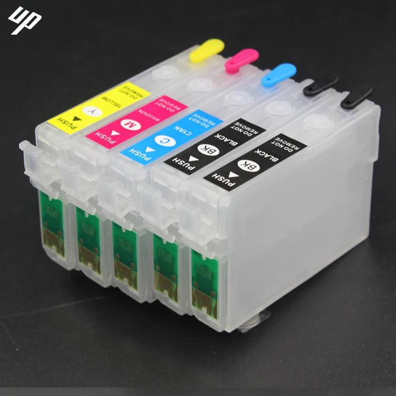 Особенности: 1. Не требуйте чипа resetter. Он с чипами автоматического сброса, он будет автоматически восстановлен, когда уровень чернил показывает пустой (просто откройте крышку принтера, выньте его, затем повторно установите его снова). 2. Пустые многоразовые чернильные картриджи, могут быть заполнены 10-14 мл всех типов чернил, красителей, пигментов, Сублимация, Съедобные, растворяющие чернила и т. Д.В комплект входит:1 комплект (5 шт.) пустой многоразовый картридж