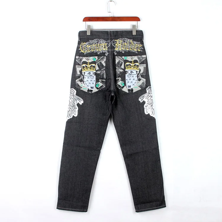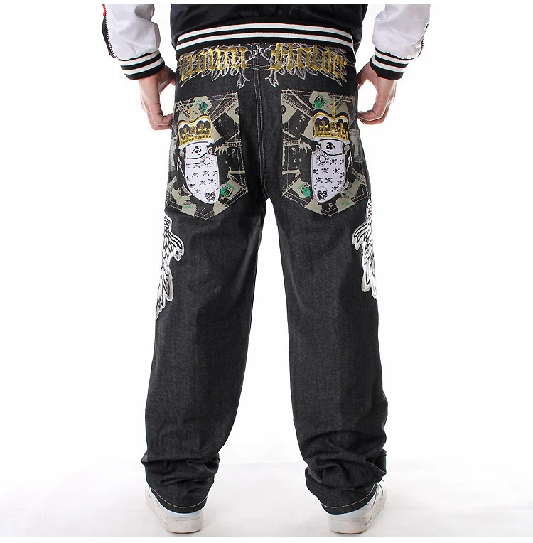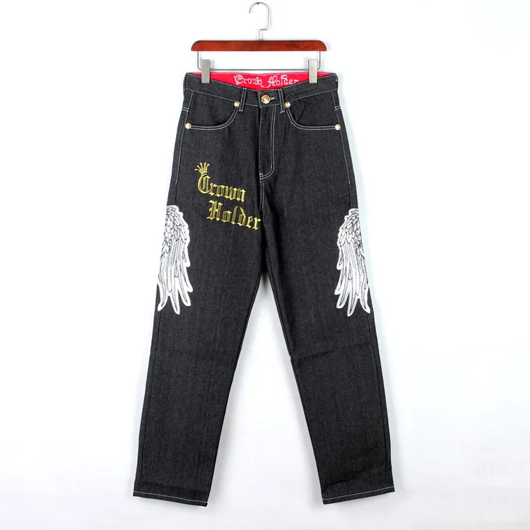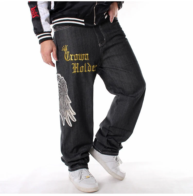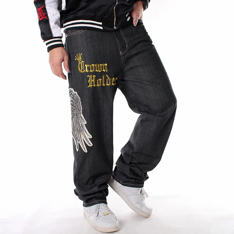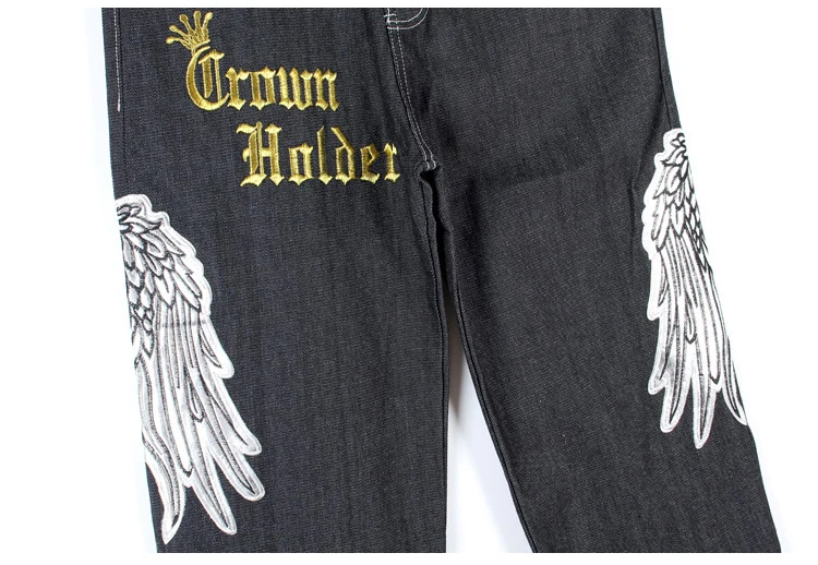 Джинсы мужские свободного покроя в стиле хип-хоп, уличная одежда, брюки-багги из денима, модные длинные штаны с надписью hawk, крыльями, черепом и короной, размера плюс