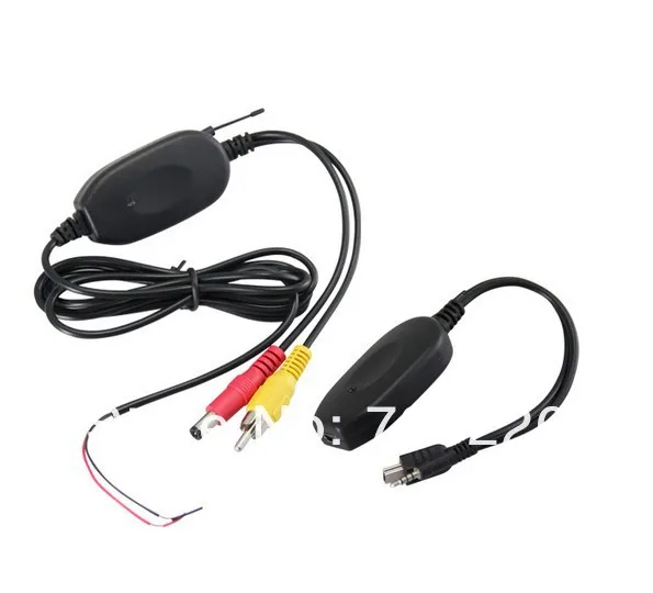 => Подключите беспроводной модуль (передатчик) к камере через два кабеля-желтая вилка для av-выхода и черная вилка для питания