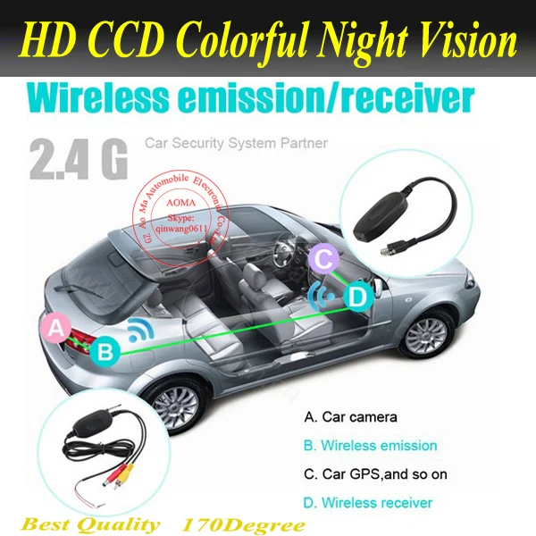 => Подключите беспроводной модуль (приемник) к автомобильному аккумулятору или прикуривателю, чтобы получить питание-красный провод для положительного и черного провода для отрицательного