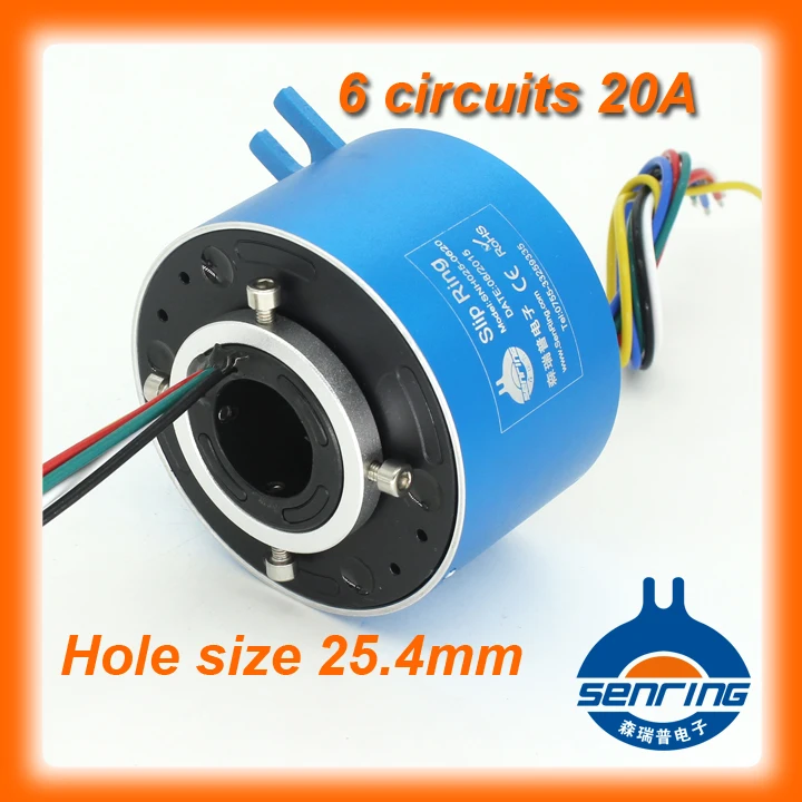 Электроника вращающаяся 6 цепей 20A проводящее скользящее кольцо 25,4 мм Размер отверстия для сквозного отверстия скользящее кольцо