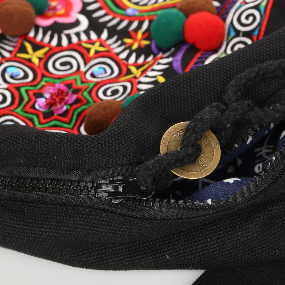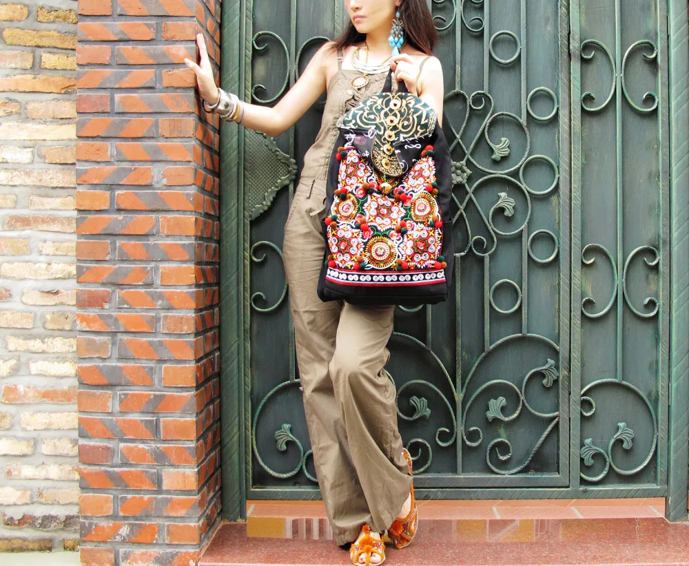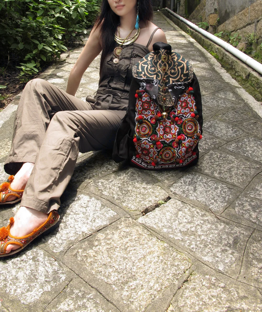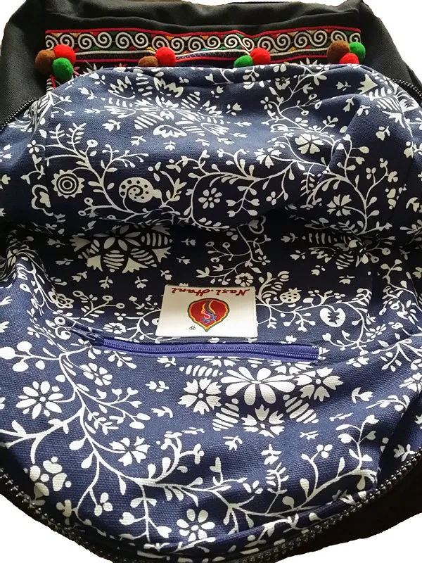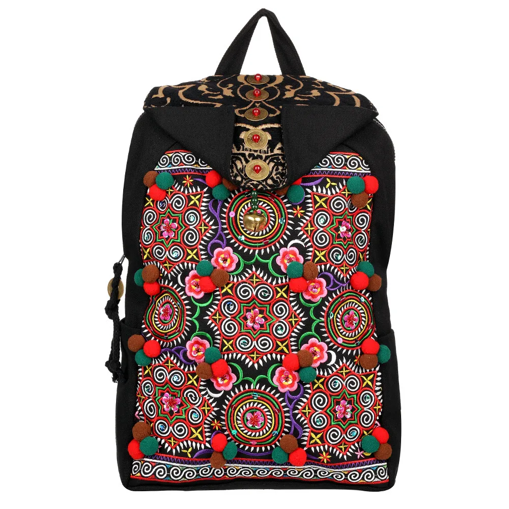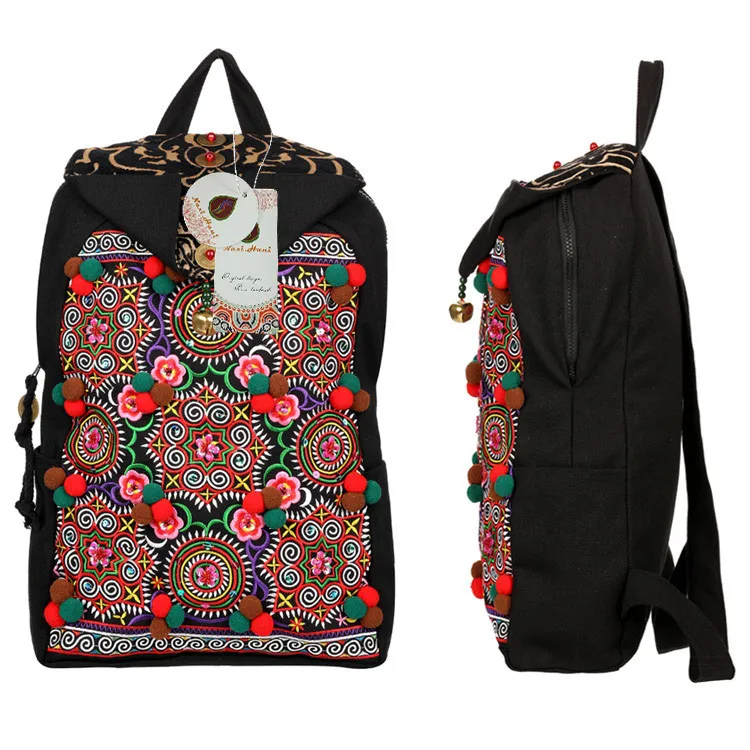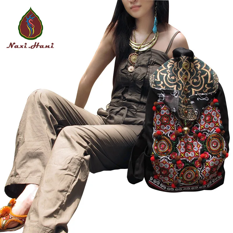 Популярный бренд, женский рюкзак с этнической вышивкой, винтажный рюкзак ручной работы, черные холщовые дорожные сумки
