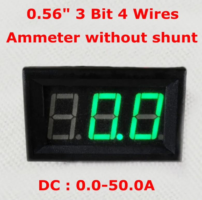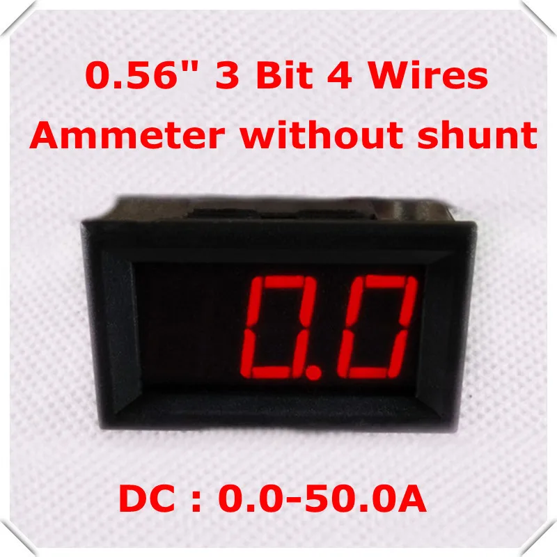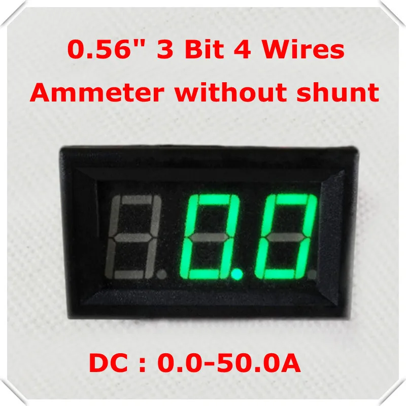 RD светодиодный дисплей Цвет 0,56 "Цифровой амперметр постоянного тока 0-50A amp 4 провода 3 знака автомобиля ток Панель метр без шунта 10 шт.лот