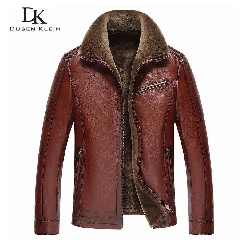 Мужские Куртки из натуральной кожи, Роскошные теплые пальто из воловьей кожи с шерстяной подкладкой, верхняя одежда для зимы, 2019