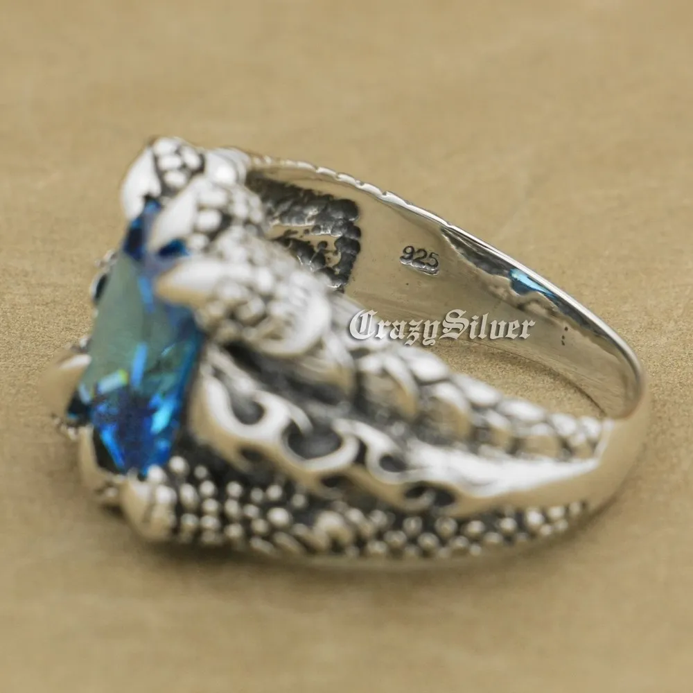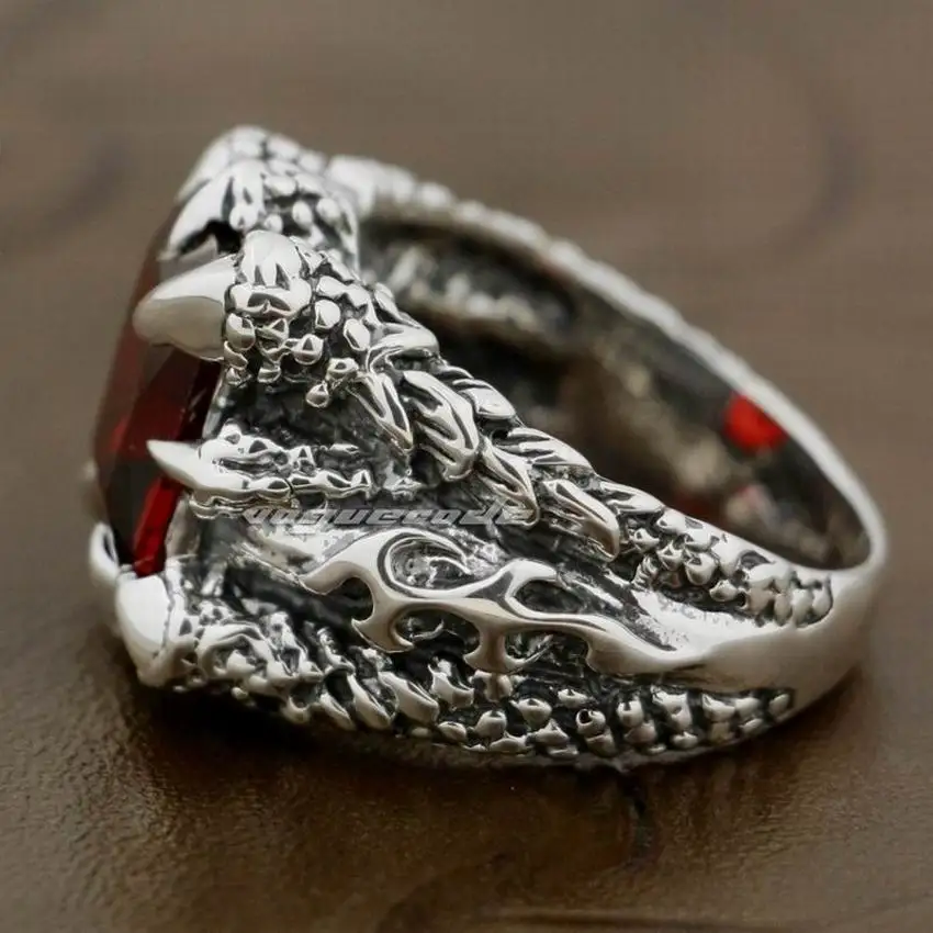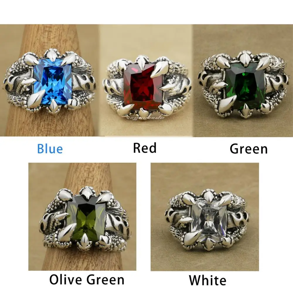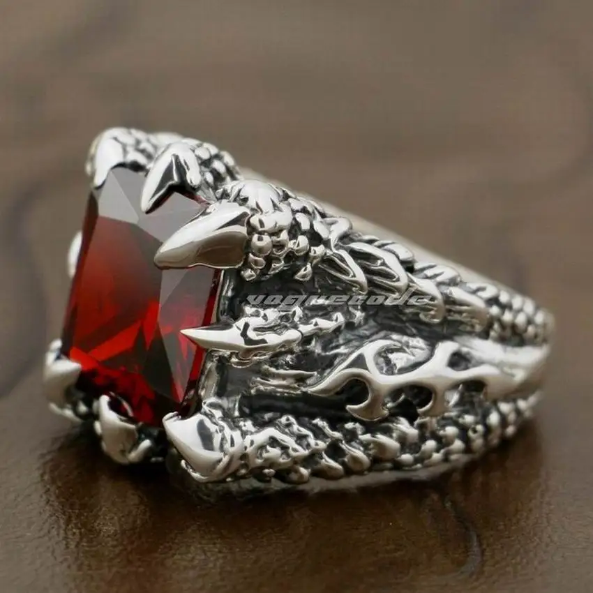 Мужское байкерское кольцо 8TX02, коготь дракона, камень из кубического циркония, серебряное кольцо в стиле панк, для байкеров