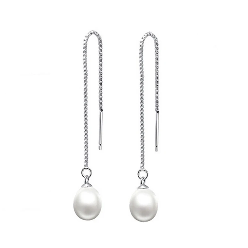 Синья стерлингового серебра Серебряные Подвесные серьги с 7,5 мм класса ААА пресноводный жемчуг длинная цепочка Висячие серьги ювелирные изделияЖенские серьги с кисточками