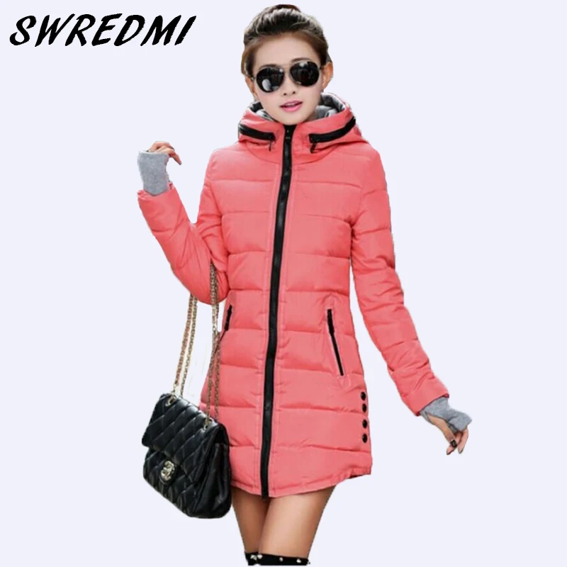 Женская зимняя куртка SWREDMI, новинка 2021, хлопковая парка средней длины, тонкая женская повседневная одежда, горячая Распродажа