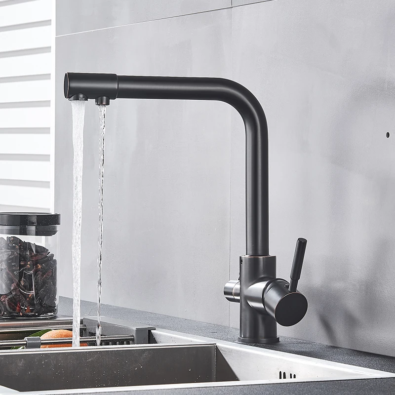 Смеситель для кухни shinessie, черный кран для очистки чистой воды, с поворотным носиком, для горячей и холодной воды