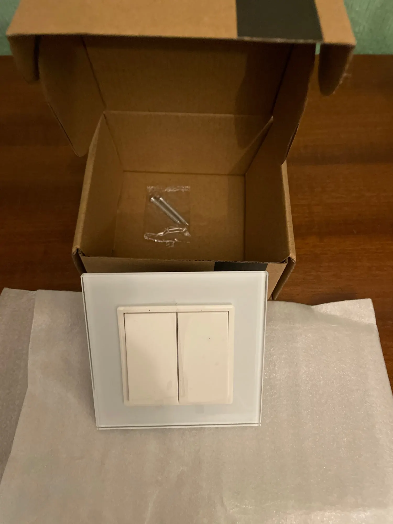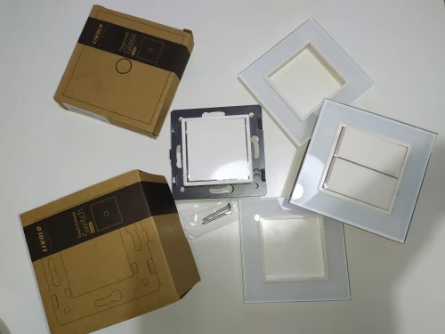 Хорошо упаковано и быстро доставлено. К качеству претензий нет, дизайн не совсем в моем вкусе, предпочел бы стеклянные клавиши вместо пластика, либо традиционную европейскую схему с более тонкой рамкой и возможностью компоновать розетки и выключатели в одной рамке
