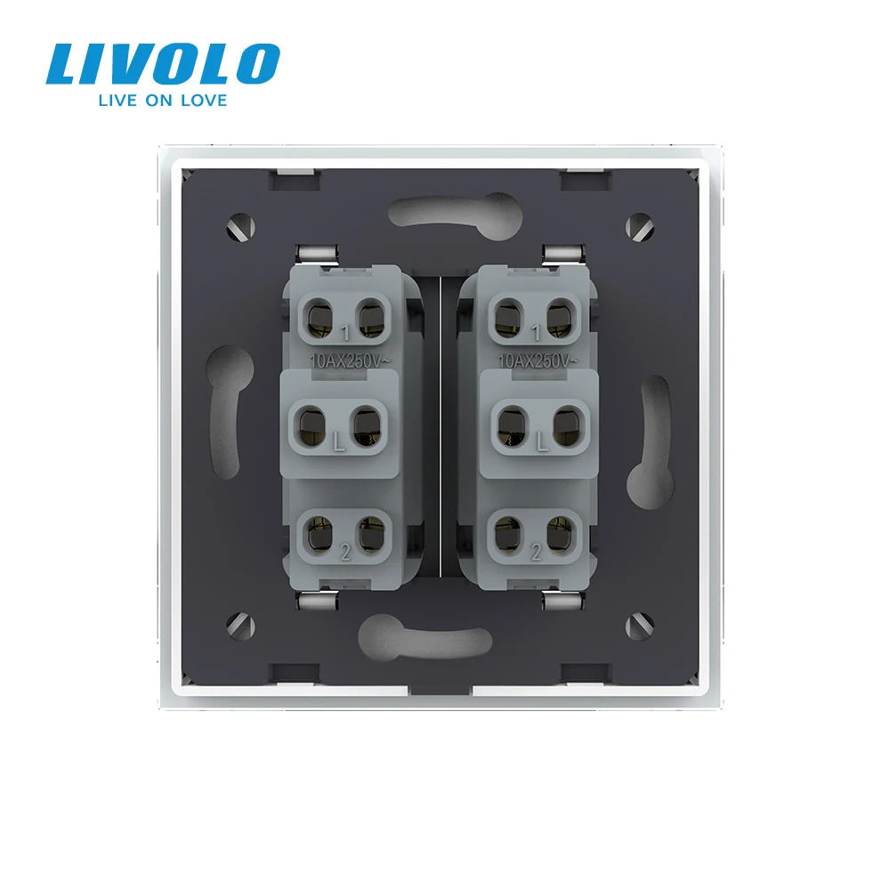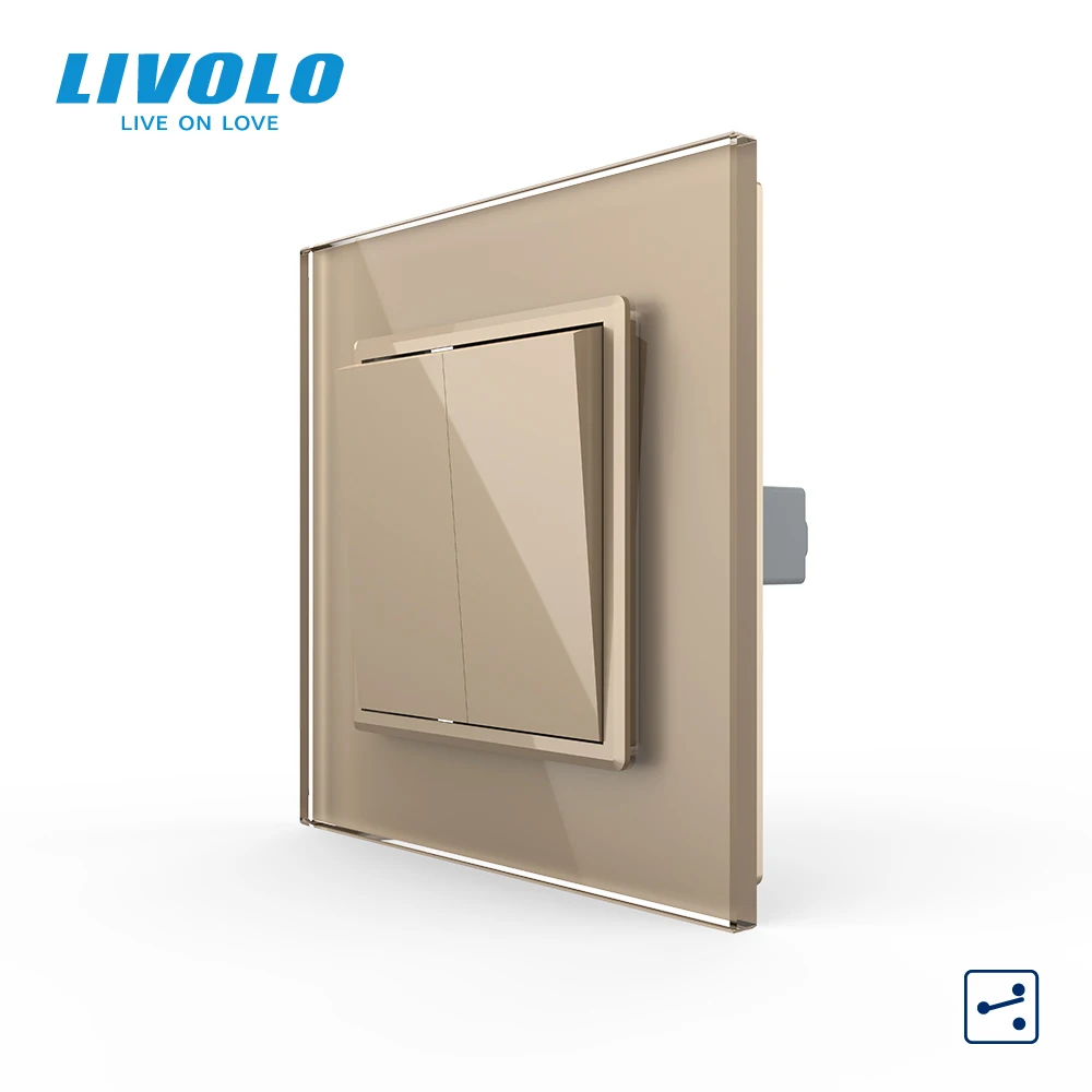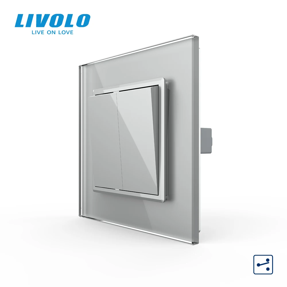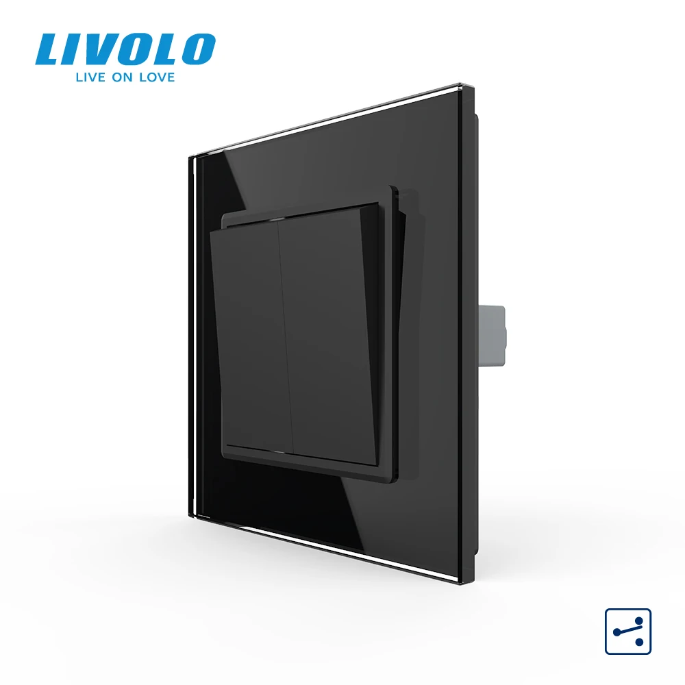 Хрустальная стеклянная панель Livolo стандарта ЕС, двухсторонний настенный переключатель, C7K2S-1112, без логотипа, клавиатура, крест