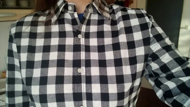 Рубашка хорошая, материал плотный, поэтому немного топорщится, даже после 2х стирок. Но в принципе качество хорошее, ни ниток, ни запаха не было. На размер S брала L, сидит почти по фигуре.