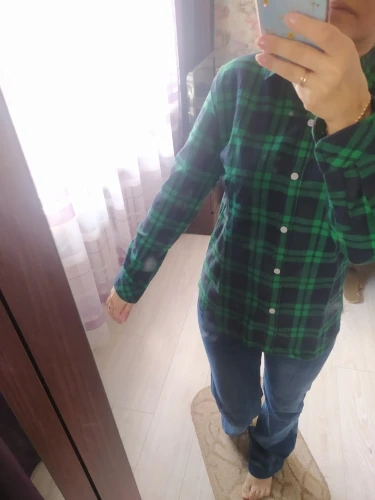 Увы покрой не подошёл на мою нестандартную фигуру. Заказала XL. В плечах большая , в талии узкая. Получится носить только нараспашку. А так рубашка хорошая , мягенькая , тёплая.