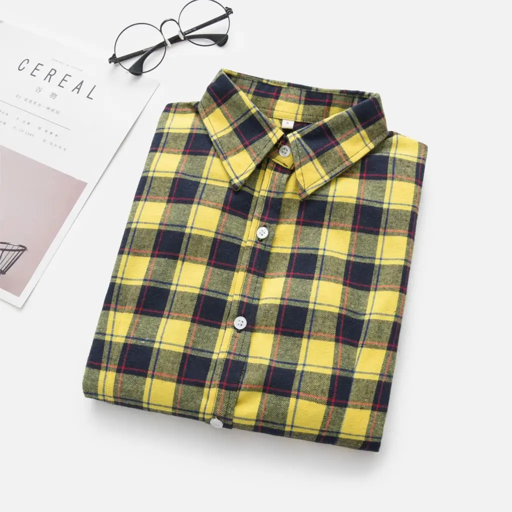 2021 Осенние новые Брендовые женские блузки с длинным рукавом, хлопковые фланелевые рубашки в клетку, женские повседневные размера плюс рубашки, женские блузки, 28 цветов