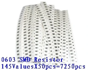 0603 SMD комплект образцов резистора, 1R-1M 145valuesx50 шт. = 7250 шт., бесплатная доставка