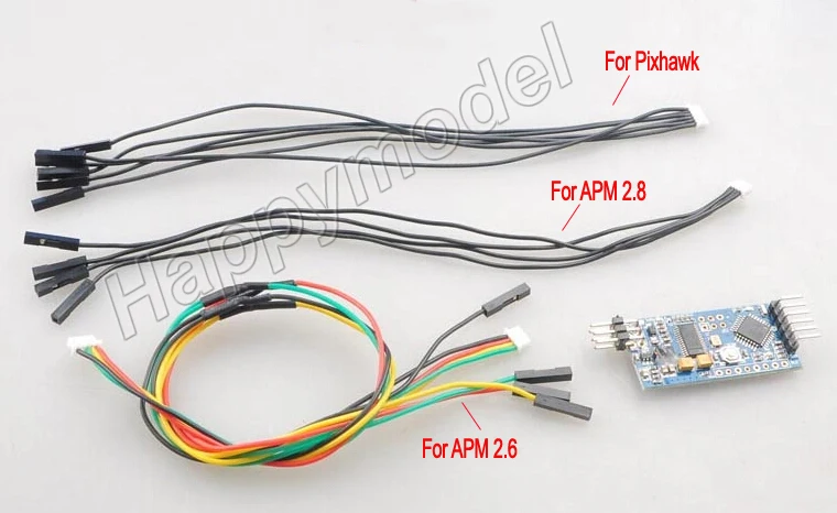 Кабель для APM 2,6 представляет собой красочное Y кабель для APM 2,8 представляет собой черный 4-контактный кабель, для Контроллер полета Pixhawk представляет собой черный 6 контакты кабеля. Пожалуйста, посмотрите на картинку следующим образом: