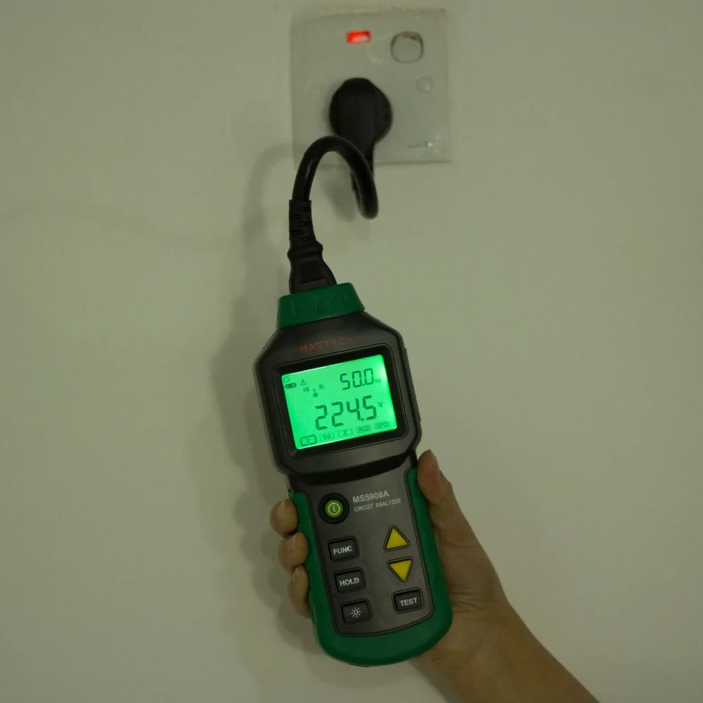 Тестер-анализатор схем Mastech MS5908 RMS по сравнению с тестовым разъемом IDEAL Sure 61-164CN 110 В или 220 В