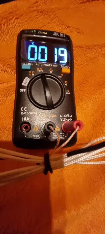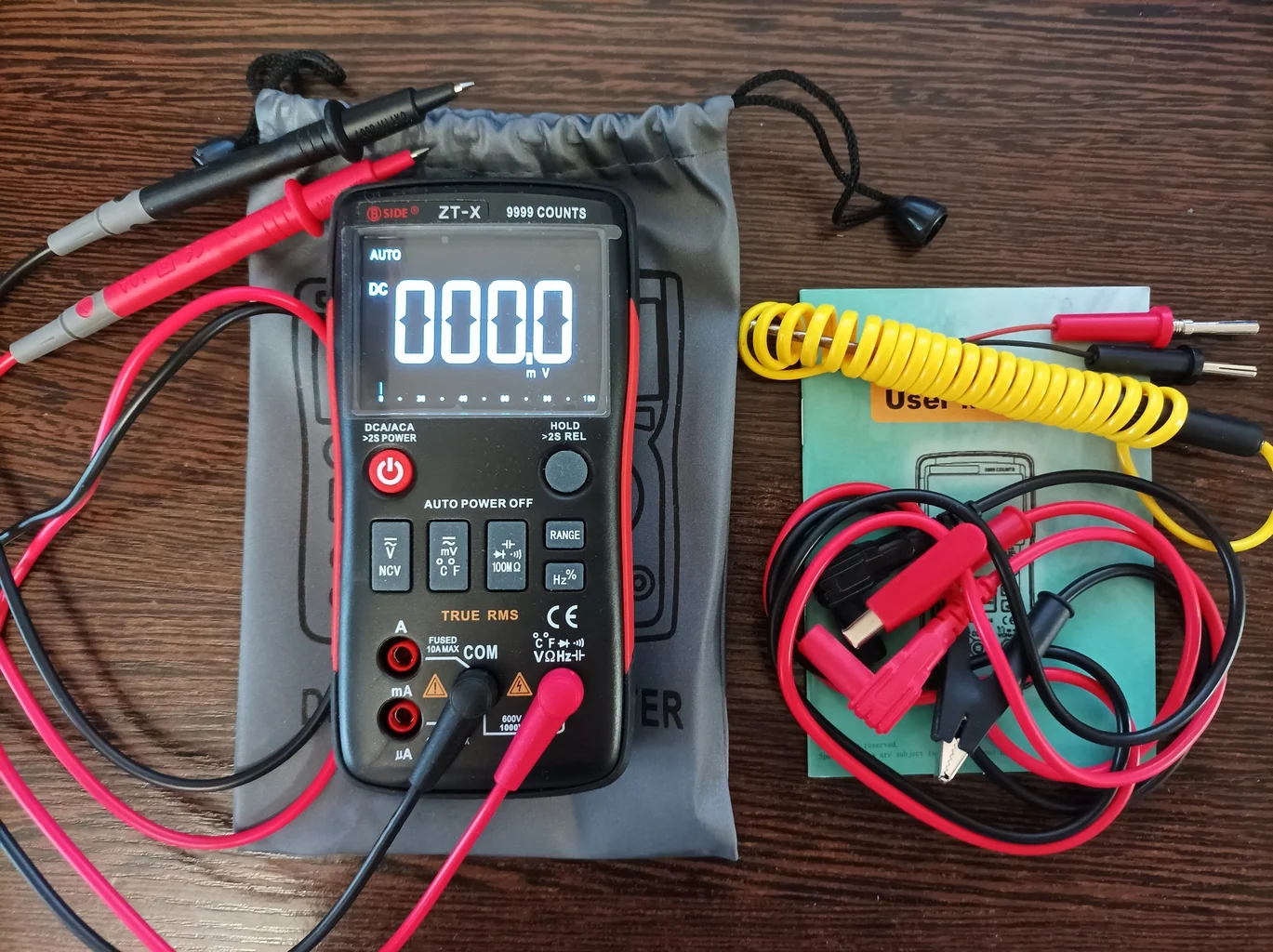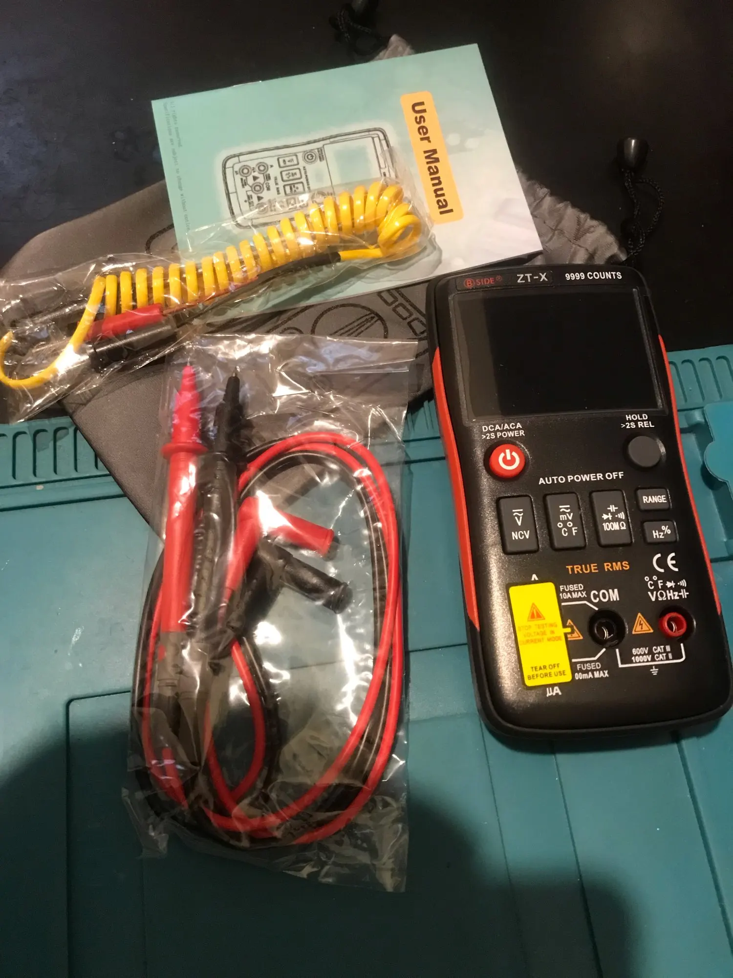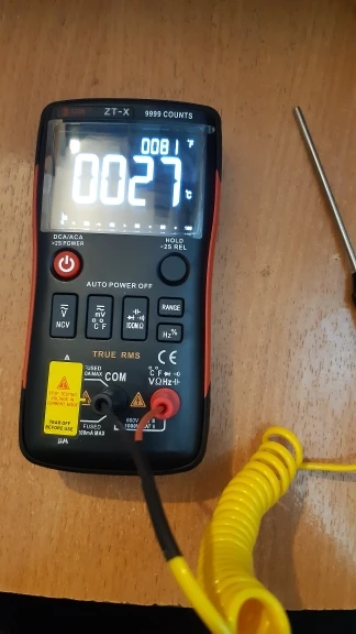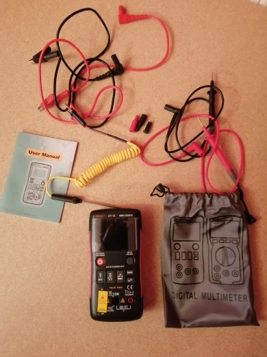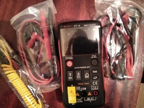 Хороший рабочий мультиметр. Работает и с 2 Ni-Mn аккумуляторами типа АА, но выдаёт оповещение о низком заряде батарей и экран более тусклый. При включении и смене режимов слышно как щелкает реле. Пользоваться очень удобно, так как можно вручную выбрать диапазон степени величин измерений. Пришёл быстро, упакован вроде бы хорошо, но у мешка переноски был сломан пластиковый наконечник у шнурка. Скорее всего так было изначально. Термопара измеряет плохо и медленно, но выдерживает температуру горящего газа.