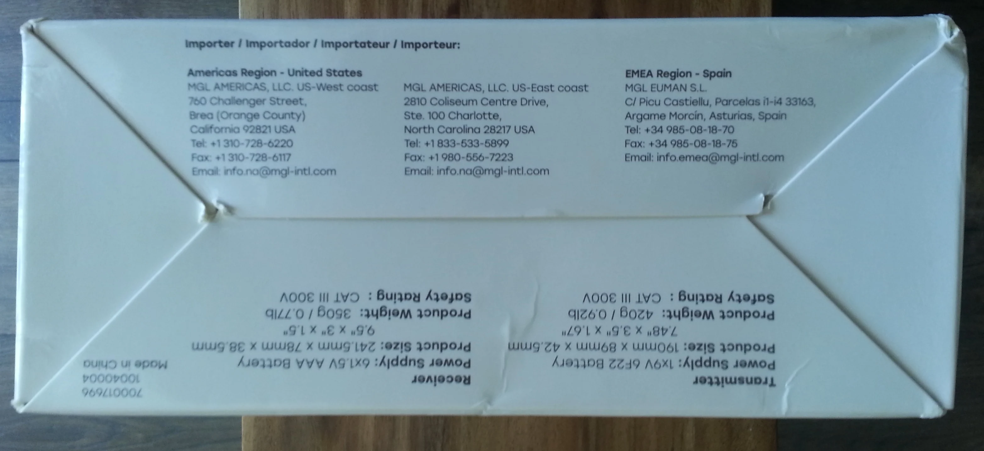 Прибор пришёл удивительно быстро из Китая. Всё работает. Единственный минус на приёмнике экран визуально плохо читается если смотреть на него под углами.