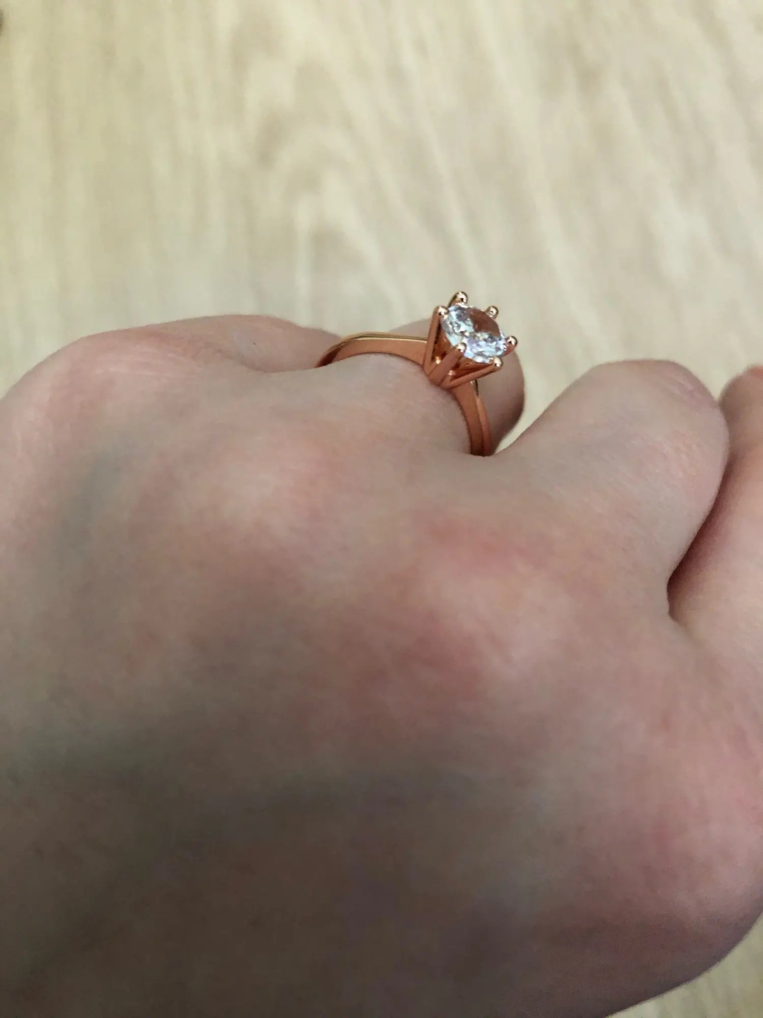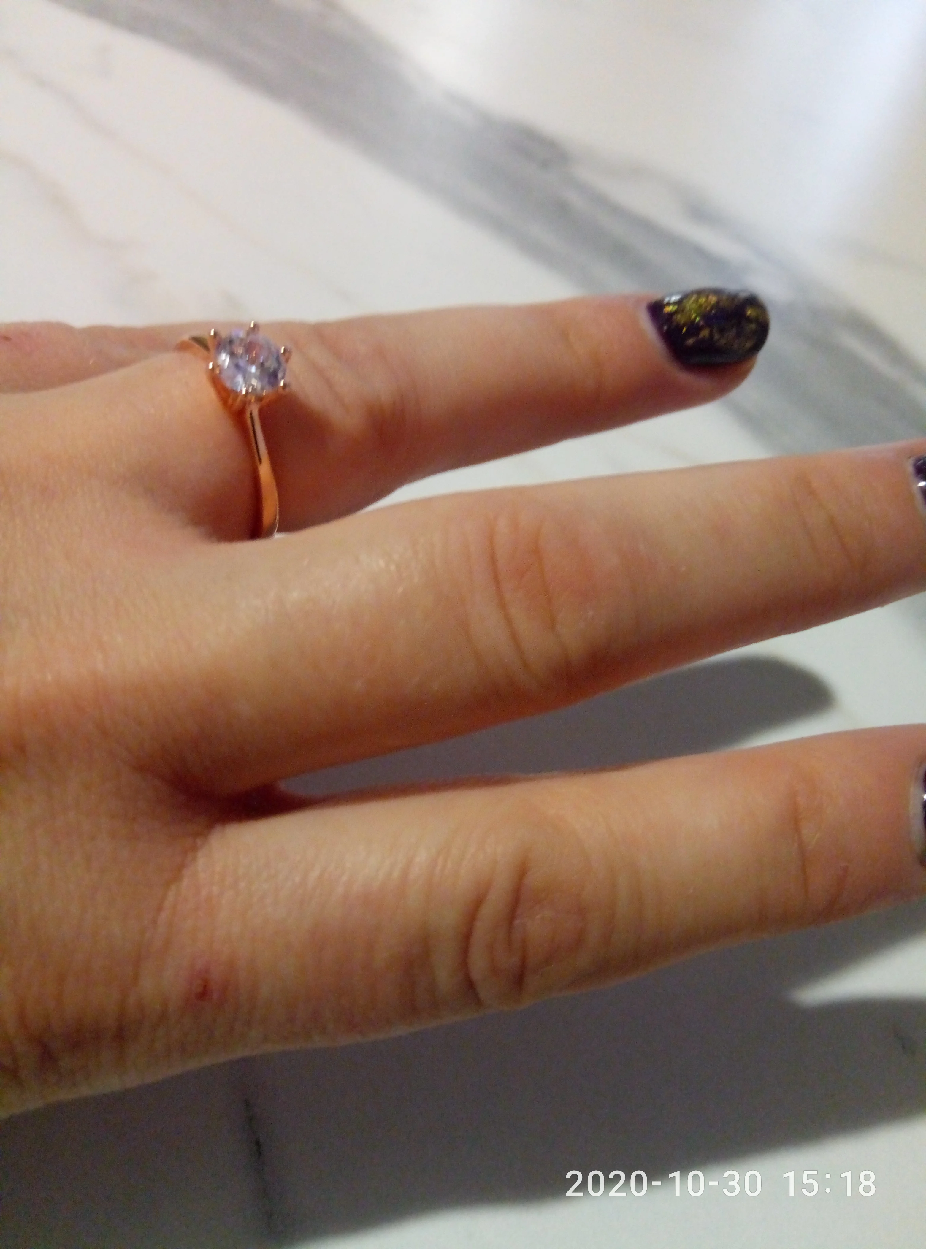 Кольцо фантастическое! Цвет золота более розовый, но если его носить одно на руке, то никто не поймёт, что это бижутерия. Брала комплект с серьгами гвоздиками, так многие спросили - золото и бриллианты?)) Советую. Берите, не пожалеете.