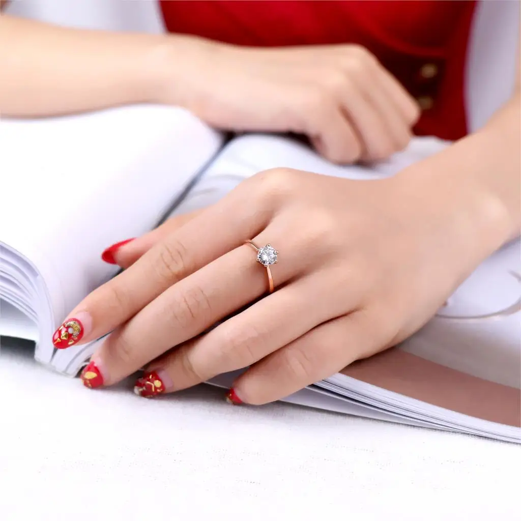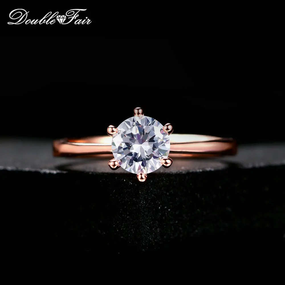 Женское Обручальное кольцо, с фианитом 1 карат, 6 когтей, белоерозовое золото, DFR014