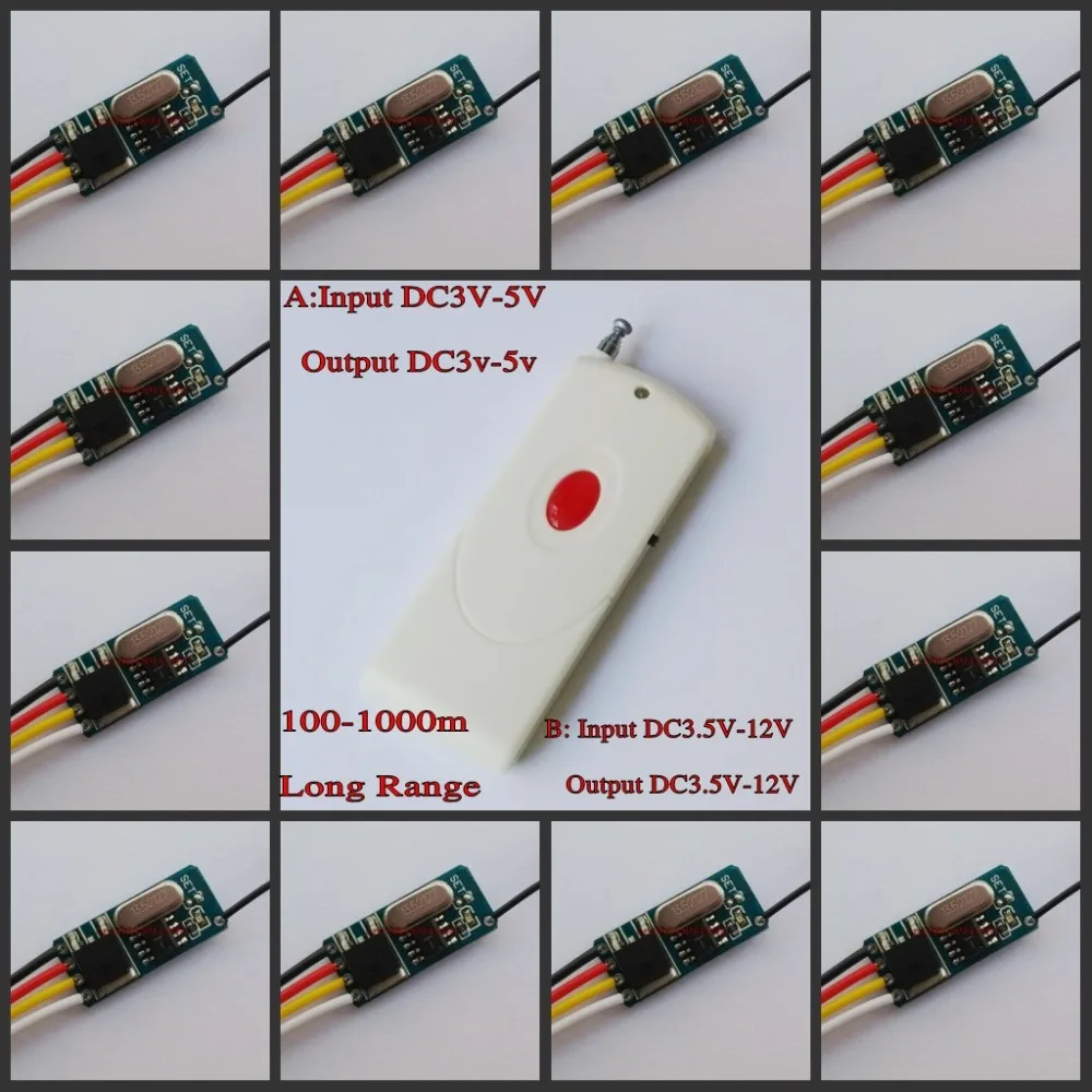 Переменный ток 3,7 В 4,5 В 5 в 6 в 7,4 В 9 в 12 В мини маленький громкость RF пульт дистанционного управления Переключатель система мгновенного переключения с блокировкой обучения