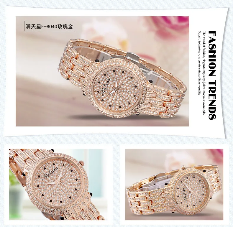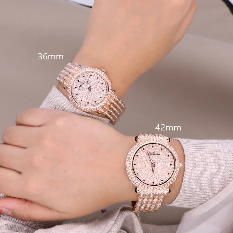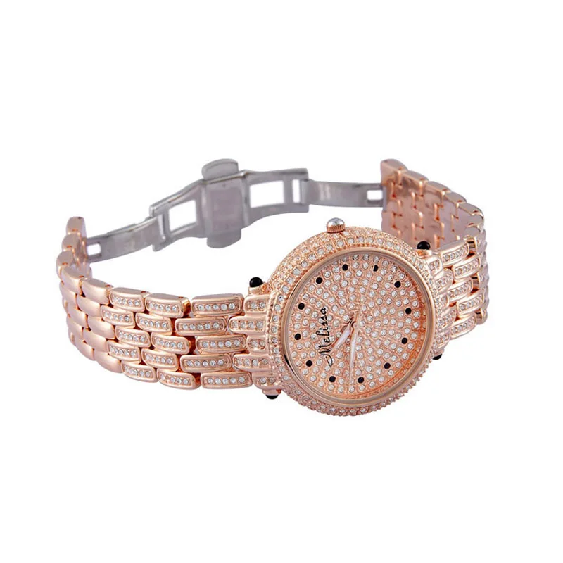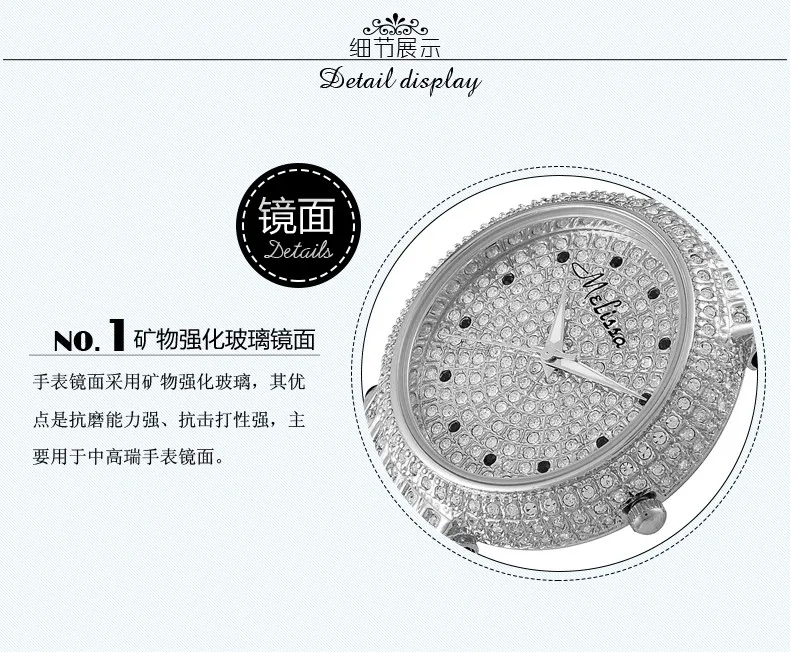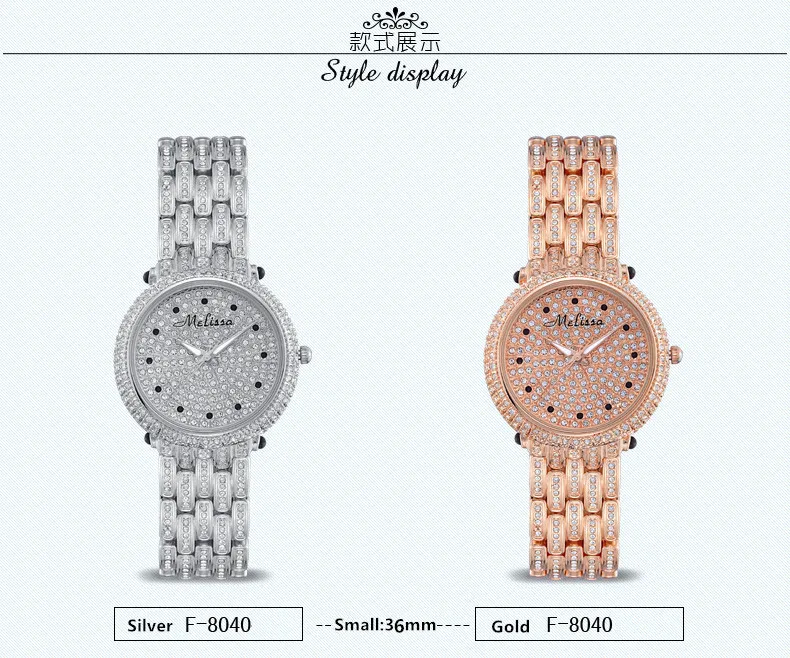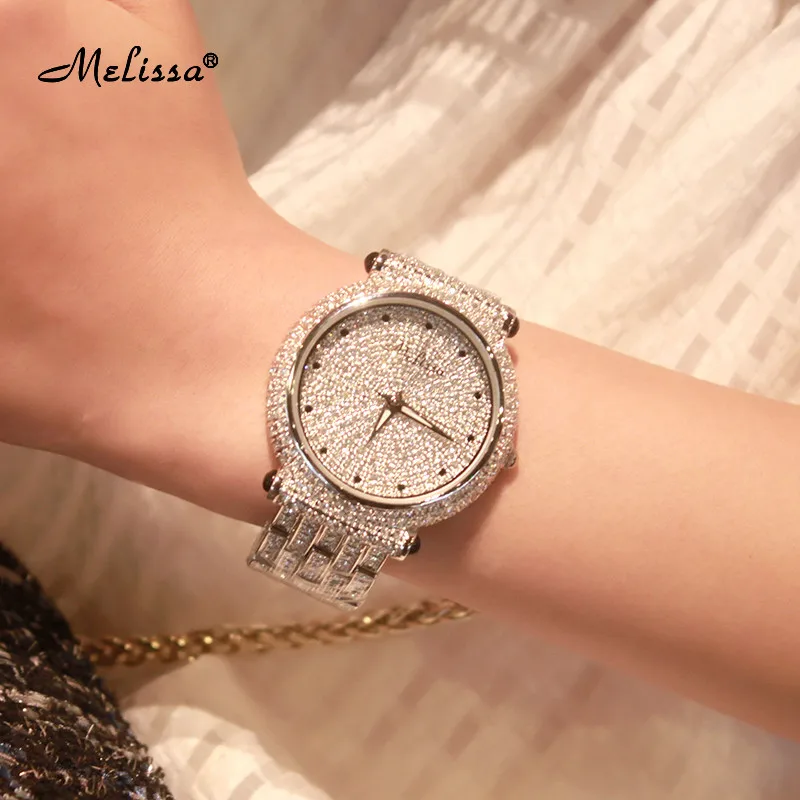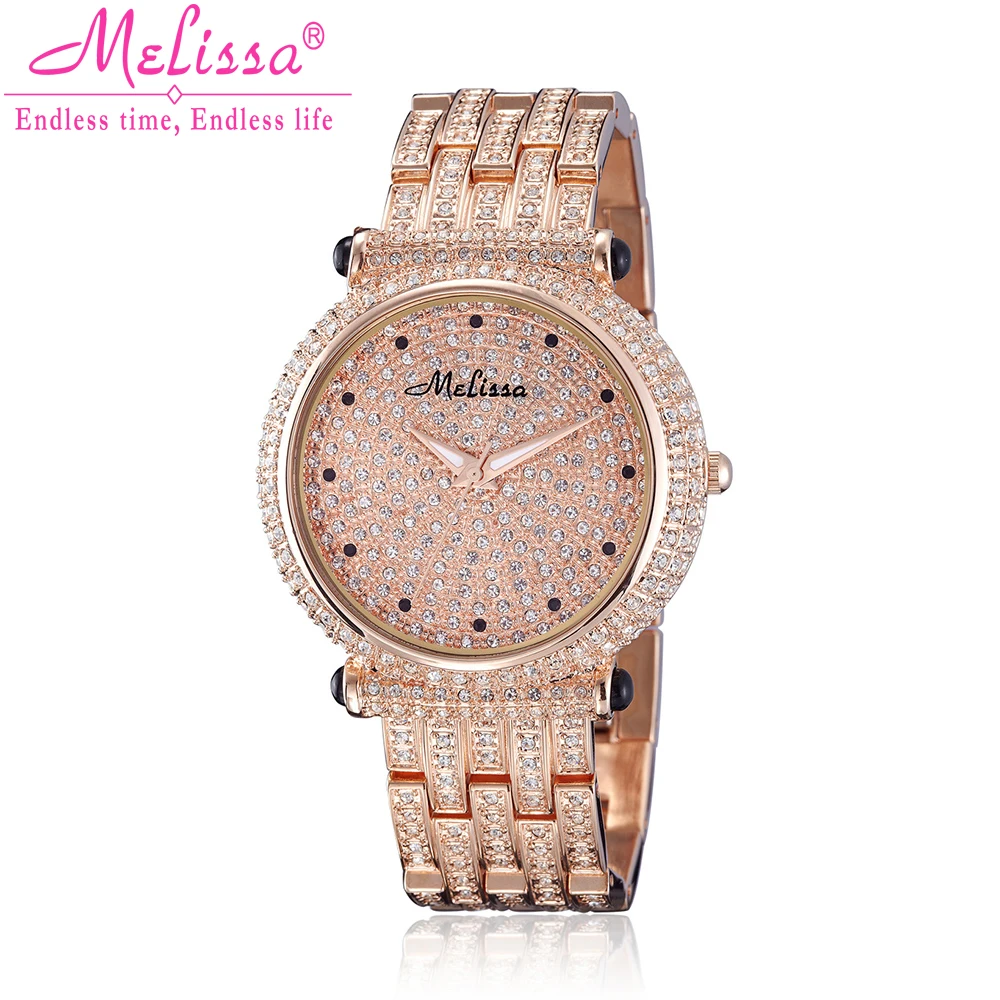 Мелисса дамы наручные часы кварцевых часов Лучший моды платье Браслет Марка нержавеющей стали Часы Роскошные Стразы блеск кубического циркония