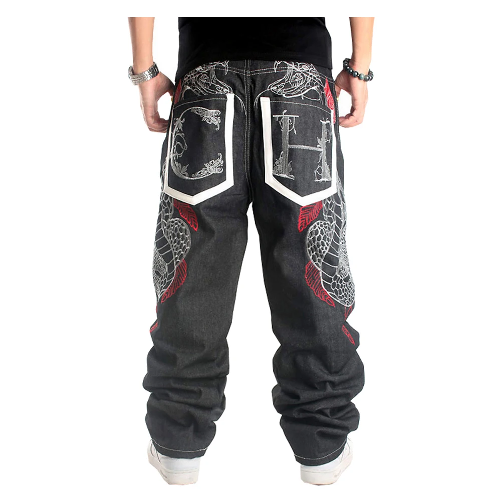 Хип-хоп джинсы Уличная одежда для мужчин размера плюс свободные мешковатые джинсовые брюки с вышивкой змеи прямые длинные брюки для мужчин